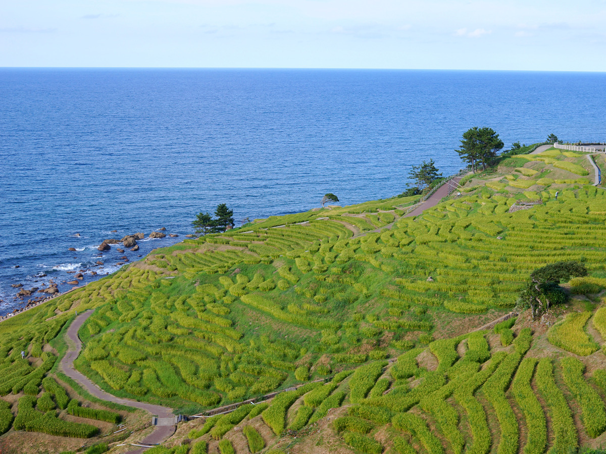 奥能登を代表する観光スポット、輪島市にある白米千枚田。2011年に日本で初めて世界農業遺産に認定された「能登の里山里海」を代表する景観で、小さな田んぼが幾重にも重なり、海へと続く階段のように広がる景色は、まさに日本の原風景です。