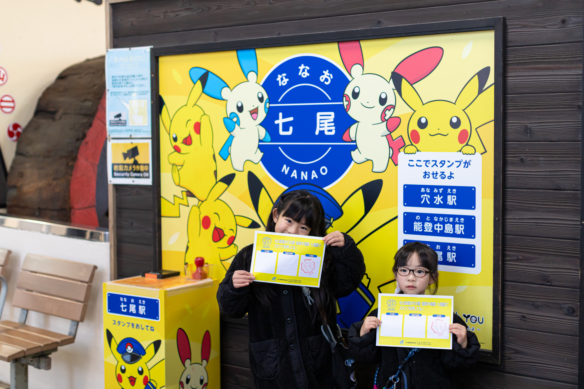 「七尾駅」「能登中島駅」「穴水駅」の3駅にはスタンプが設置されており、思わずすべて集めたくなります。子どもはもちろん、大人も楽しめる仕掛けがあるのは、公共交通を使った旅ならではのうれしいポイントです!!