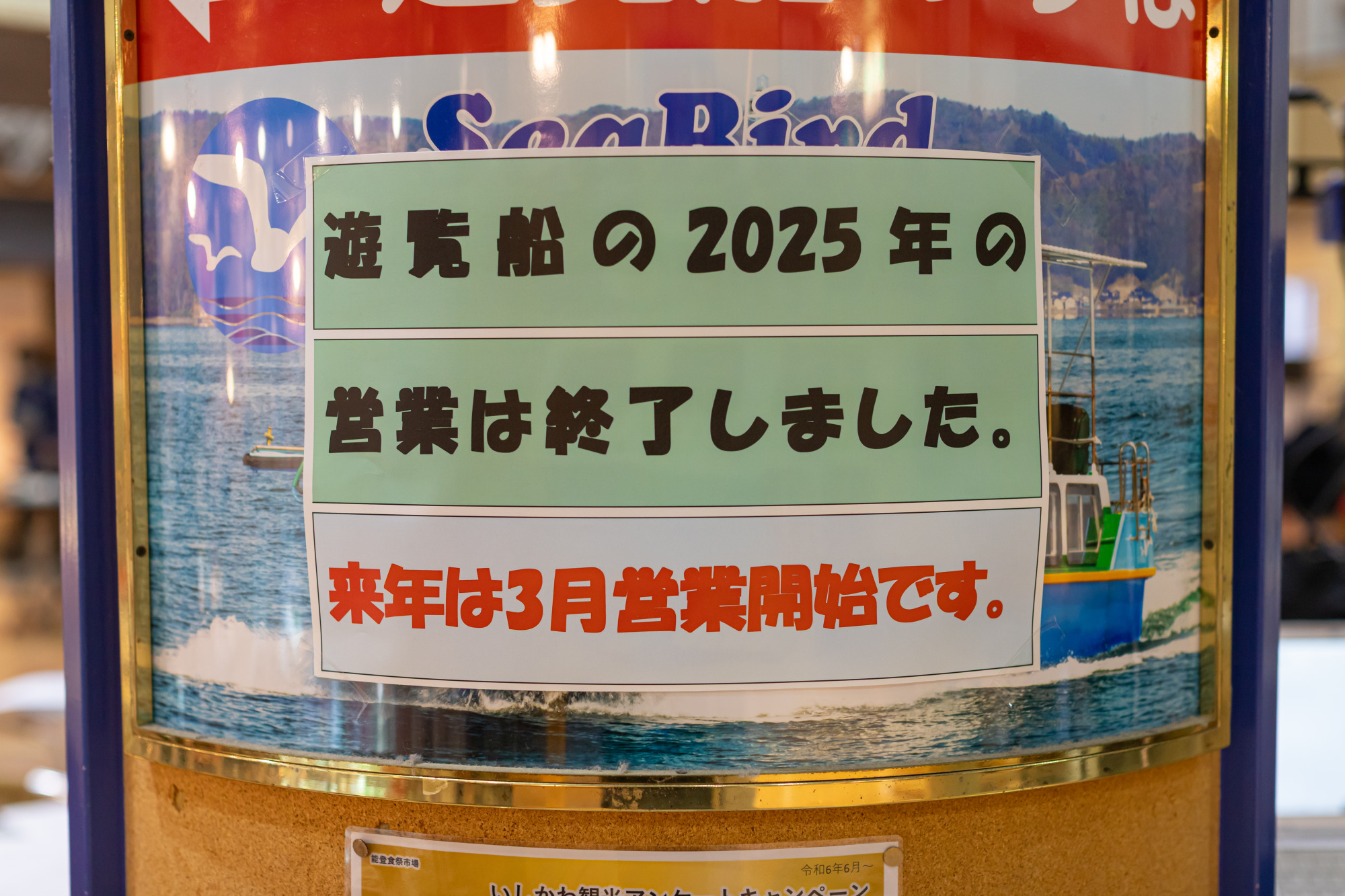 今回は冬季のため営業期間外となっており、残念ながら乗船することはできませんでした。(冬季休業期間:11月29日〜3月下旬)