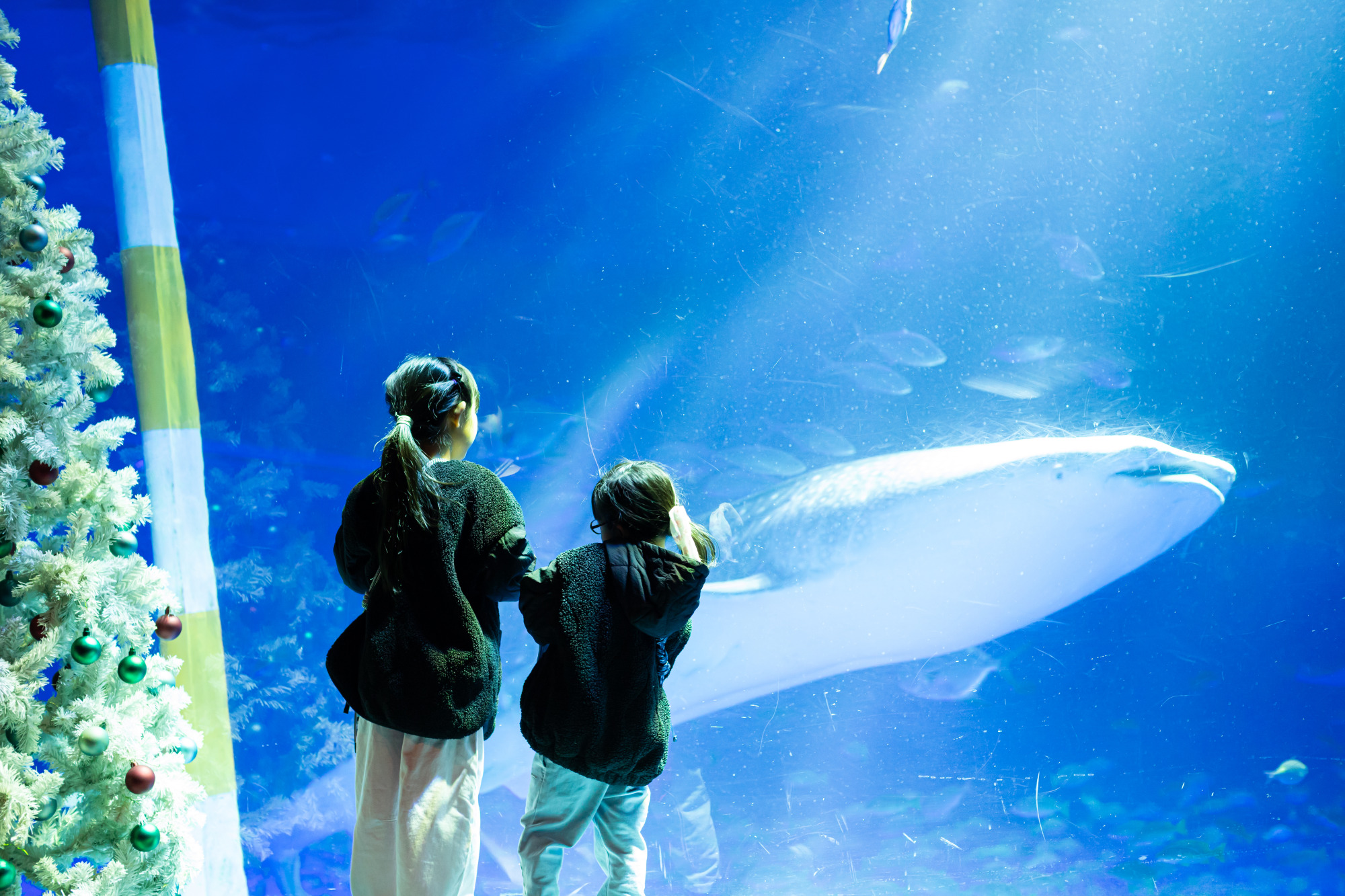 館内でひときわ存在感を放つのが、ジンベエザメ。優雅に泳ぐ姿と、その圧倒的な大きさに、子どもたちは思わず声を上げていました。