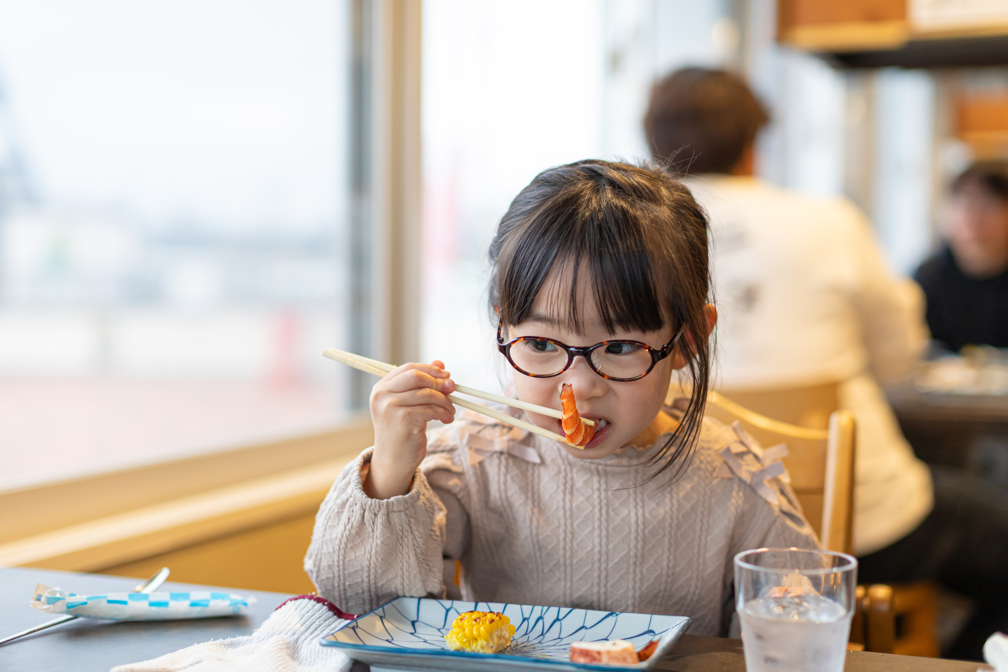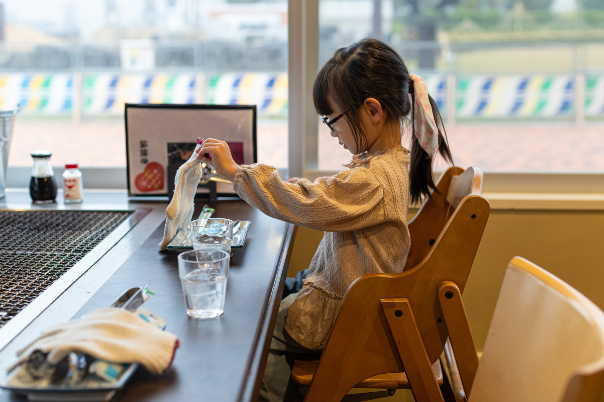 まず、広々とした席に大きな窓があり、子ども用のイスも用意されていて、家族連れにはうれしい快適な空間です。