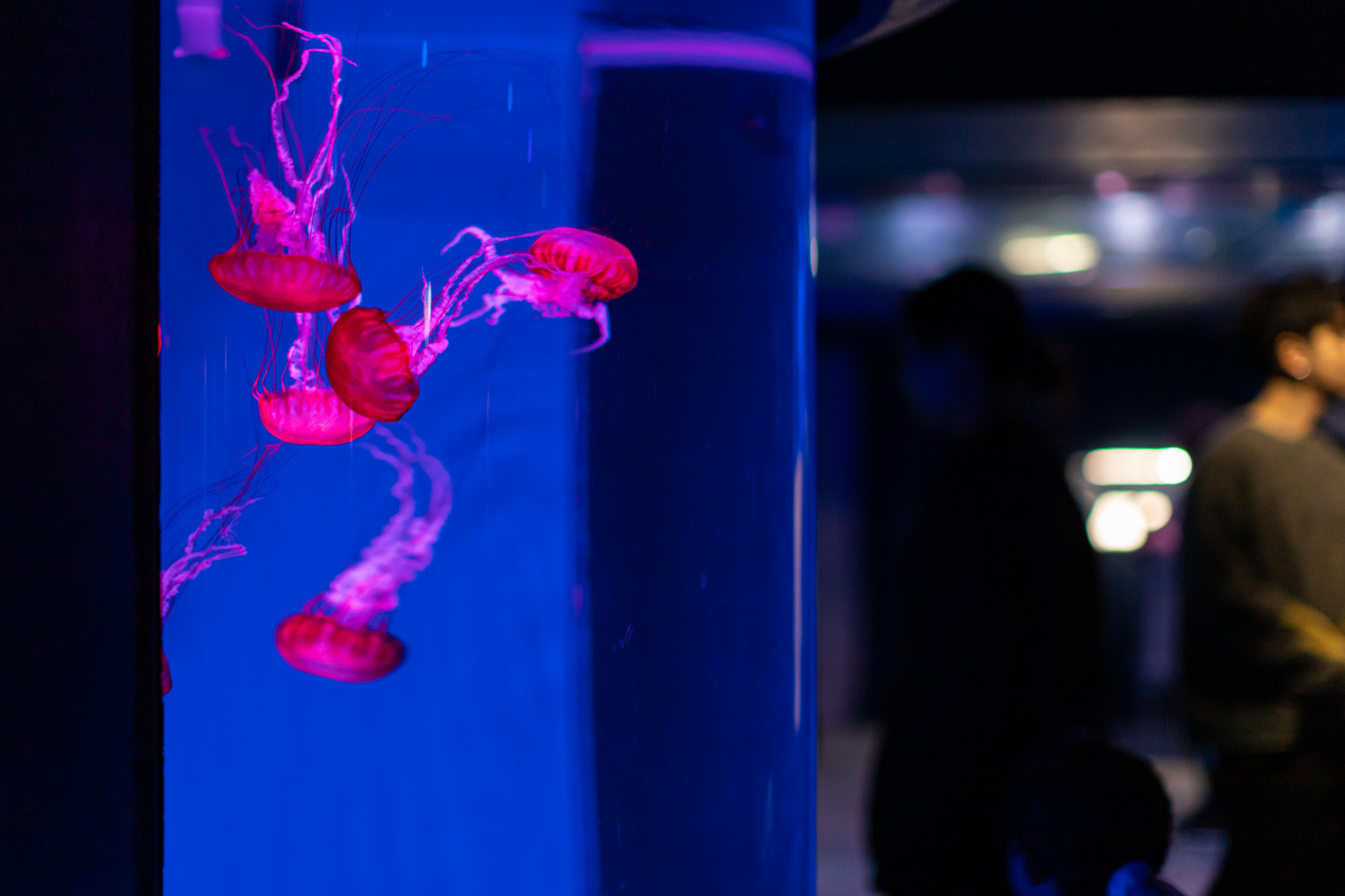 重力を感じさせない、ふわりと漂う神秘的なクラゲたち。光とともに浮かび上がる幻想的な姿に、自然と足を止めてしまいます。
