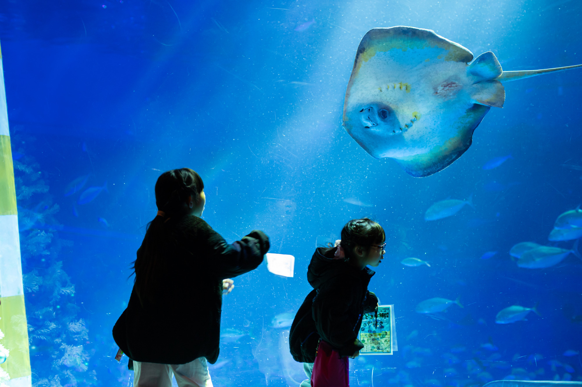優雅に泳ぐエイの姿は、まるで空を飛んでいるかのよう。思わず足を止めて見入ってしまう美しさです。