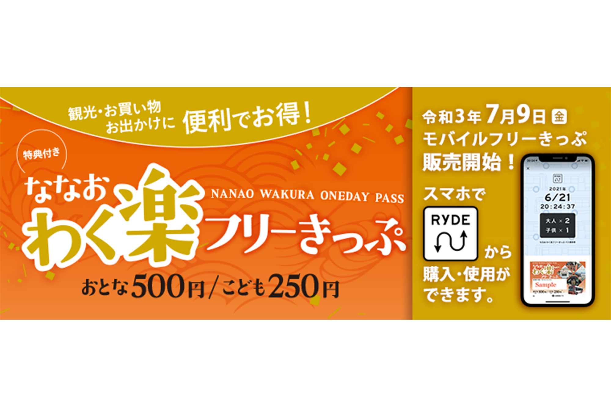 「ななお わく楽フリーきっぷ」は、七尾駅〜能登食祭市場〜和倉温泉エリアを結ぶ路線バスが、1日乗り放題になるお得なフリー乗車券です。