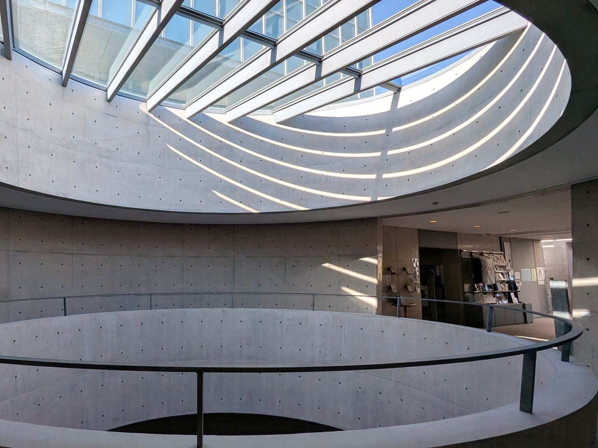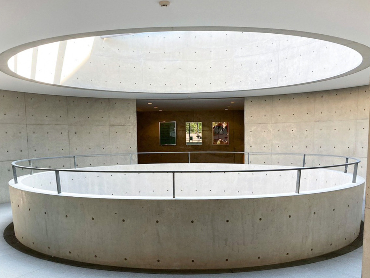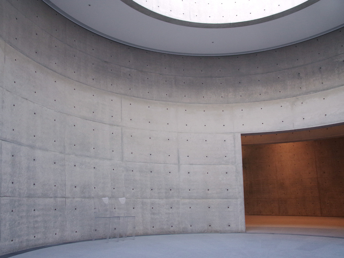 清々しい空気の中で深呼吸をしたあと、館内に一歩踏み入れると、そこはもう安藤建築の世界。打ち放しコンクリートの無彩色に差し込む柔らかな光が、やさしく迎えてくれます。