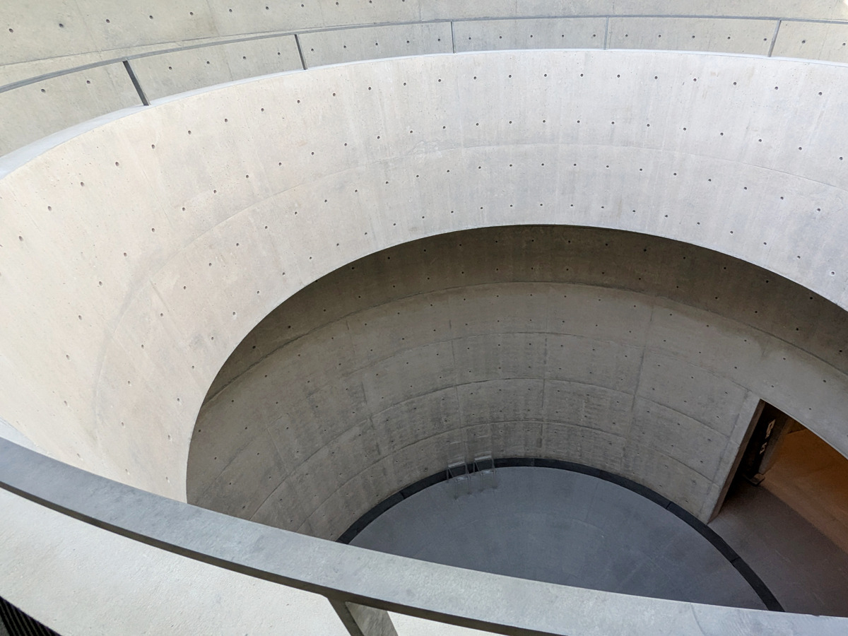 すり鉢状の形に沿って壁が斜めになっているからか、回廊の中に立つと少し感覚がずれるような浮遊感があります。不思議な感覚に包まれながら、ゆっくりと中を歩きました。