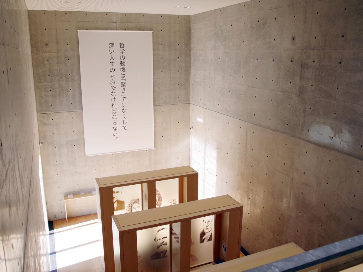哲学の入り口を体験できたら、ぜひ哲学そのものに触れてみてください。西田幾多郎の貴重な資料と詳細な解説で、哲学をより深く知ることができます。館内にも洗練された設計が随所にあり、安藤建築ならではの打ち放しコンクリートと光のリズムが、あちこちに見られます。