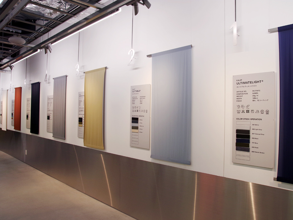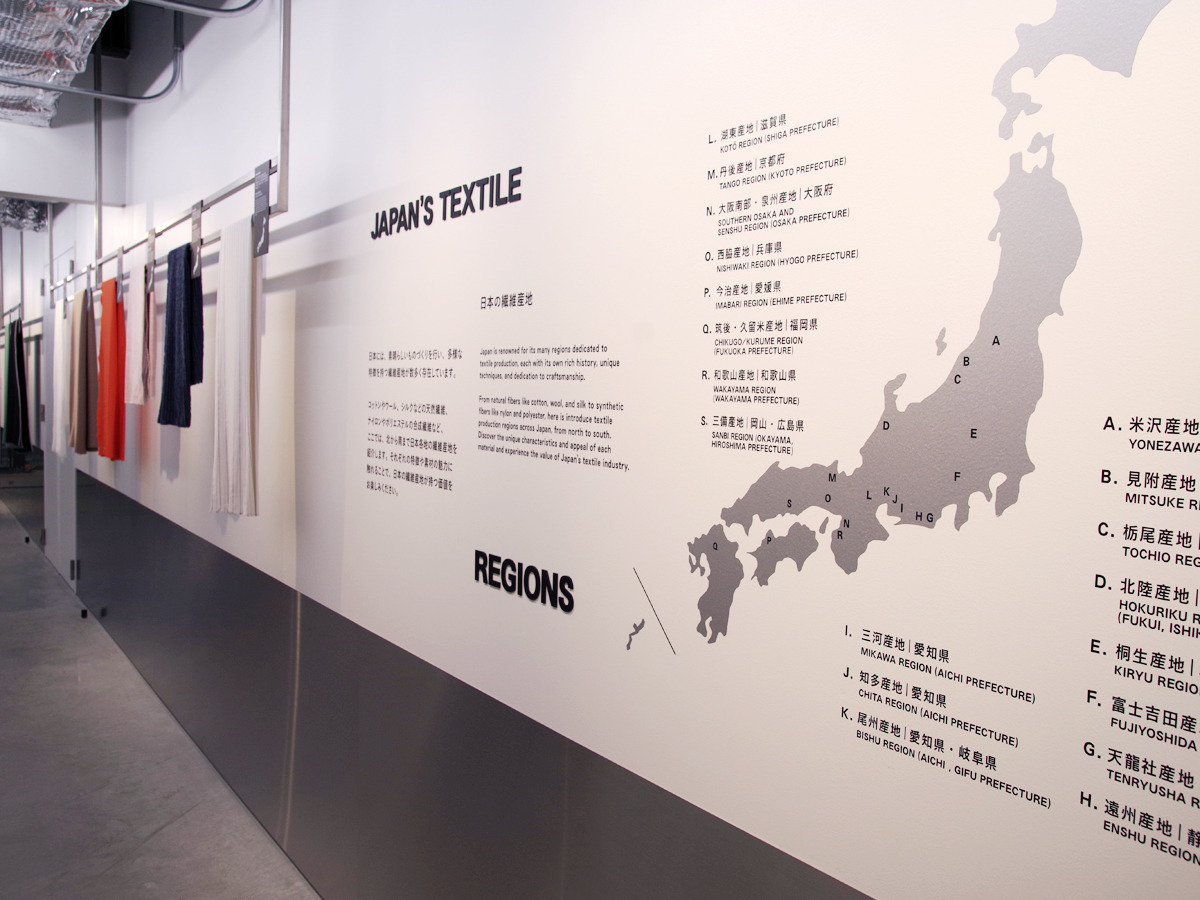 2階を奥へ進むと、さまざまな生地と解説の展示があります。カジグループが開発したテキスタイルブランド「KAJIF」の生地に実際に触れながら、繊維について学べます。また、生地が使われているウェアも展示されていて、よく見ると有名なアウトドアブランド名がずらり。私が普段お世話になっているブランドのウェアもあり、地元企業が世界に貢献していることを知って、驚きと感謝の気持ちまで湧いてきました。