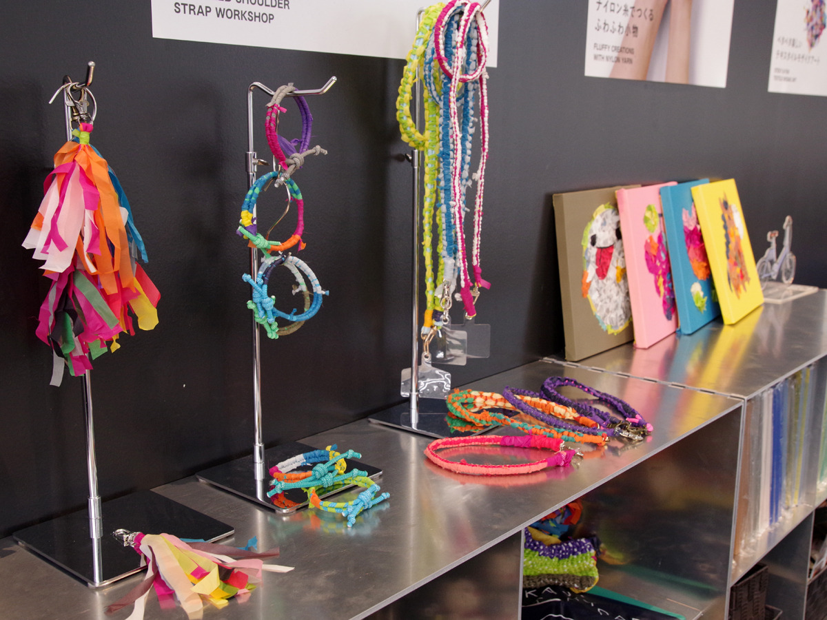 生地で作るワークショップも開催されています。生地の端切れを再利用して作る作品は、どれもカラフルでポップ。当日申し込みで体験できますが、実施時間が決まっているため、事前に時間を確認して予定を組むのがよさそうです。また、日によって作れる作品の種類が変わるので、公式サイトで確認してみてください。