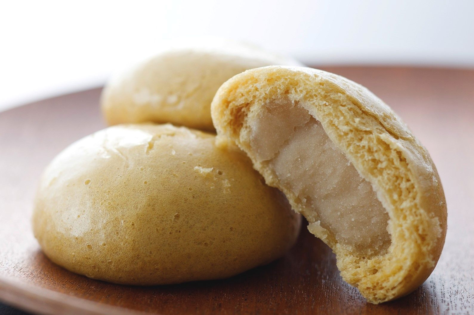 能登の和菓子店、まずは七尾市の「みそまんじゅう本舗 竹内(田鶴浜本店)」です。看板商品は店名にもなっている「みそまんじゅう」。生地はふっくらとしていて、味噌の味わいがほのかに感じられます。北海道産いんげん豆を100%使用した自家製の優しい餡との組み合わせが格別で、一度食べたらやみつきになりますよ~。