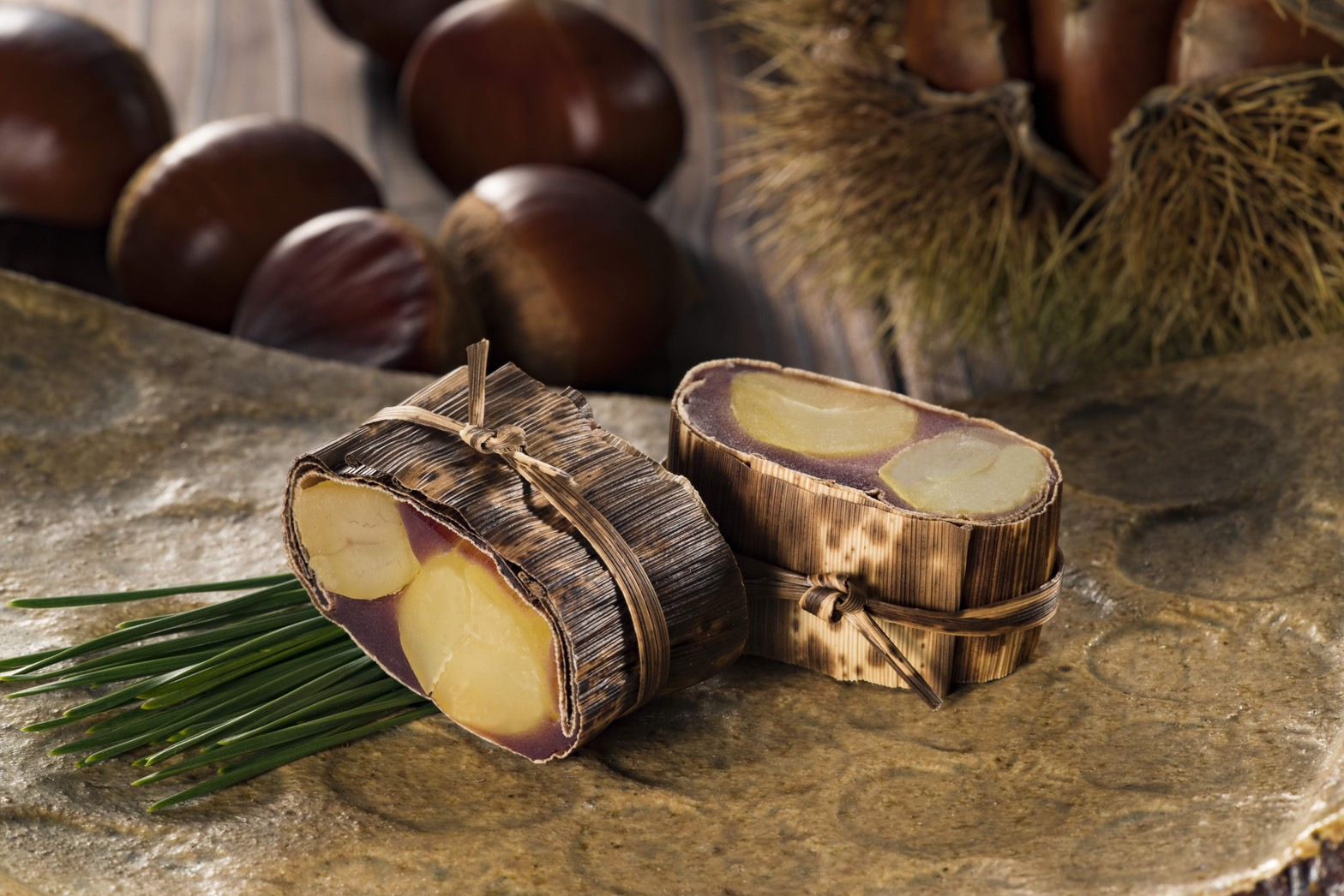 「御菓子司 松葉屋」(小松市)の菓子作りは、嘉永5(1852)年、加賀の名刹・那谷寺の門前で羊羹を商ったことから始まりました。名物「栗蒸し羊羹『月よみ山路』」は、どこを切っても栗がごろごろと現れる贅沢さ。葛を加えて蒸し上げた餡は上品な甘さで、竹皮のほのかな香りもたまらない逸品です。七代にわたる松葉屋の菓子は、地元はもちろん全国の人たちに愛されています!