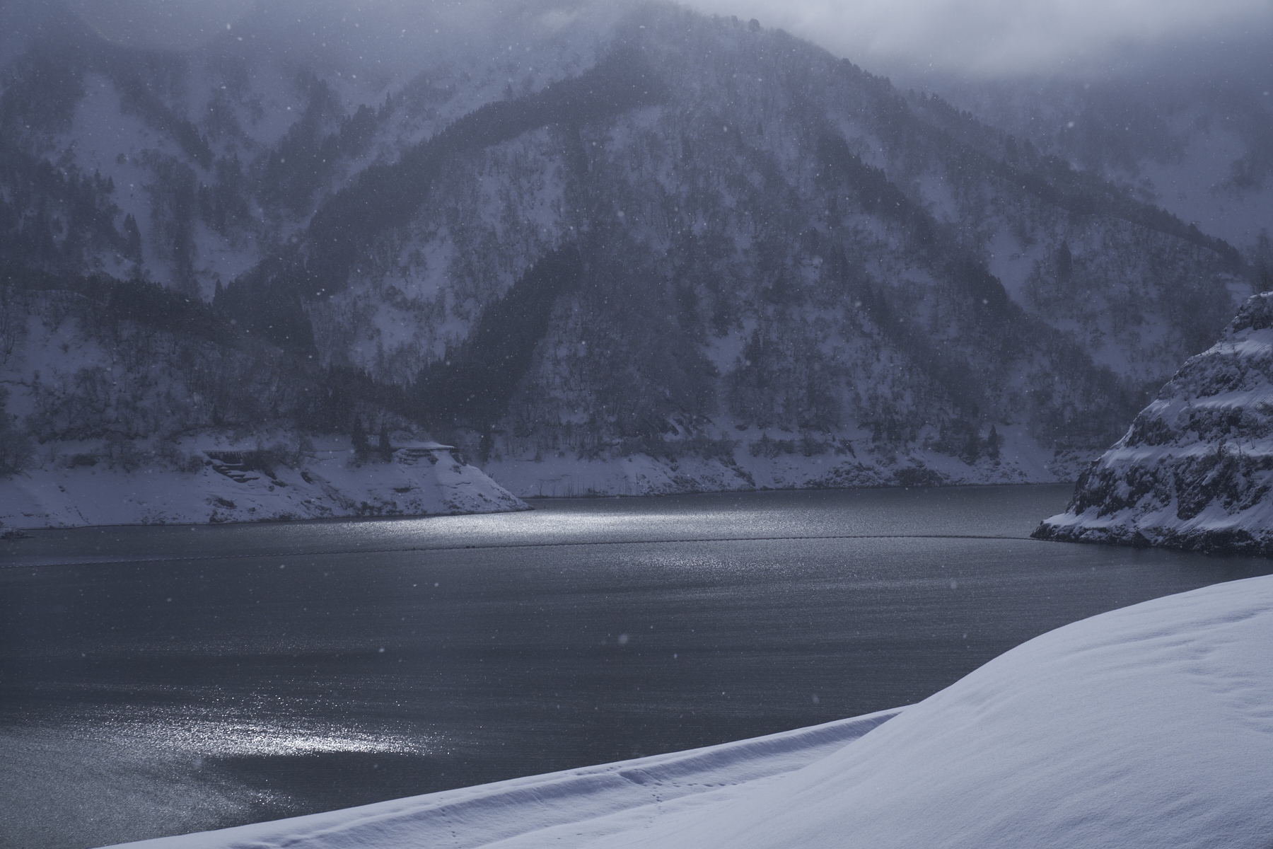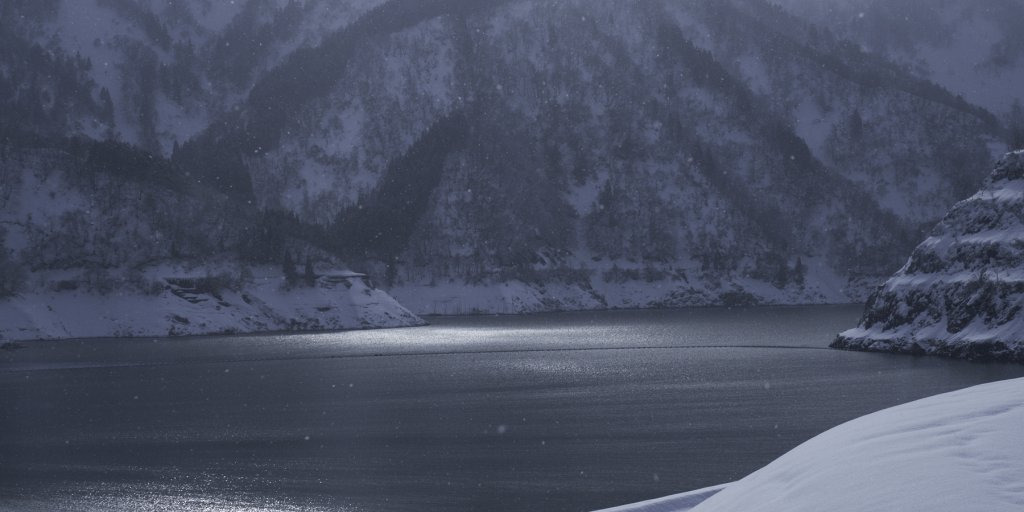 白山の山々を湖面に映し、 満々と青い水をたたえる手取川ダム。 巨大な岩や土を緩い勾配で盛りたてて作った 国内最大級のロックフィルダムです。
