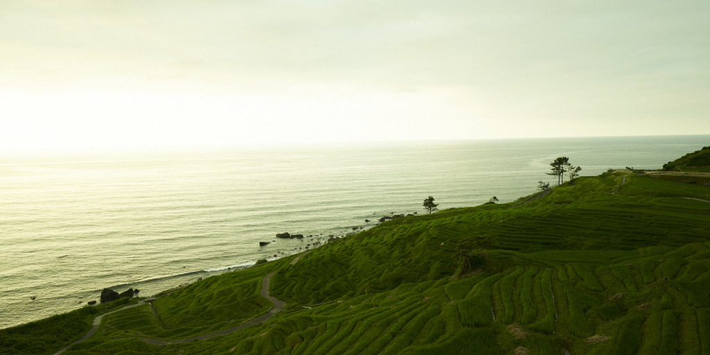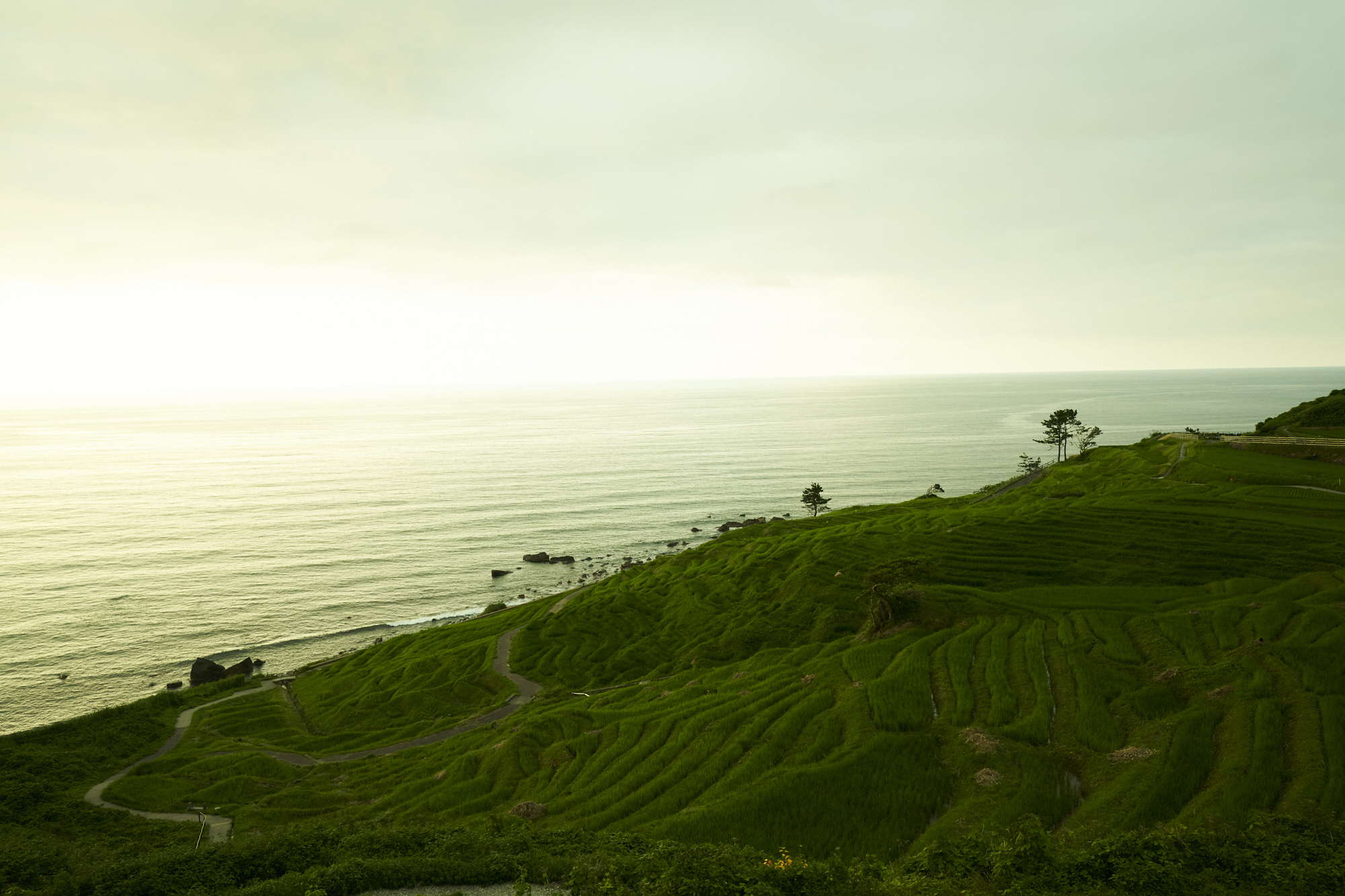 小さな田が海岸まで続く、能登を代表する景勝地。もっとも高い田と低い田の高低差が56m、他の枚数は1,004枚と、全国の棚田の中でも随一の景観を誇ります。