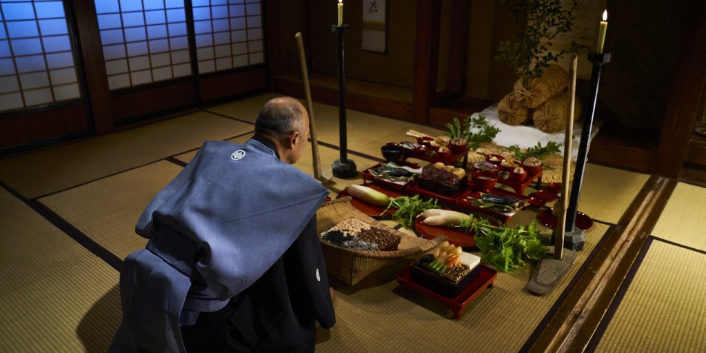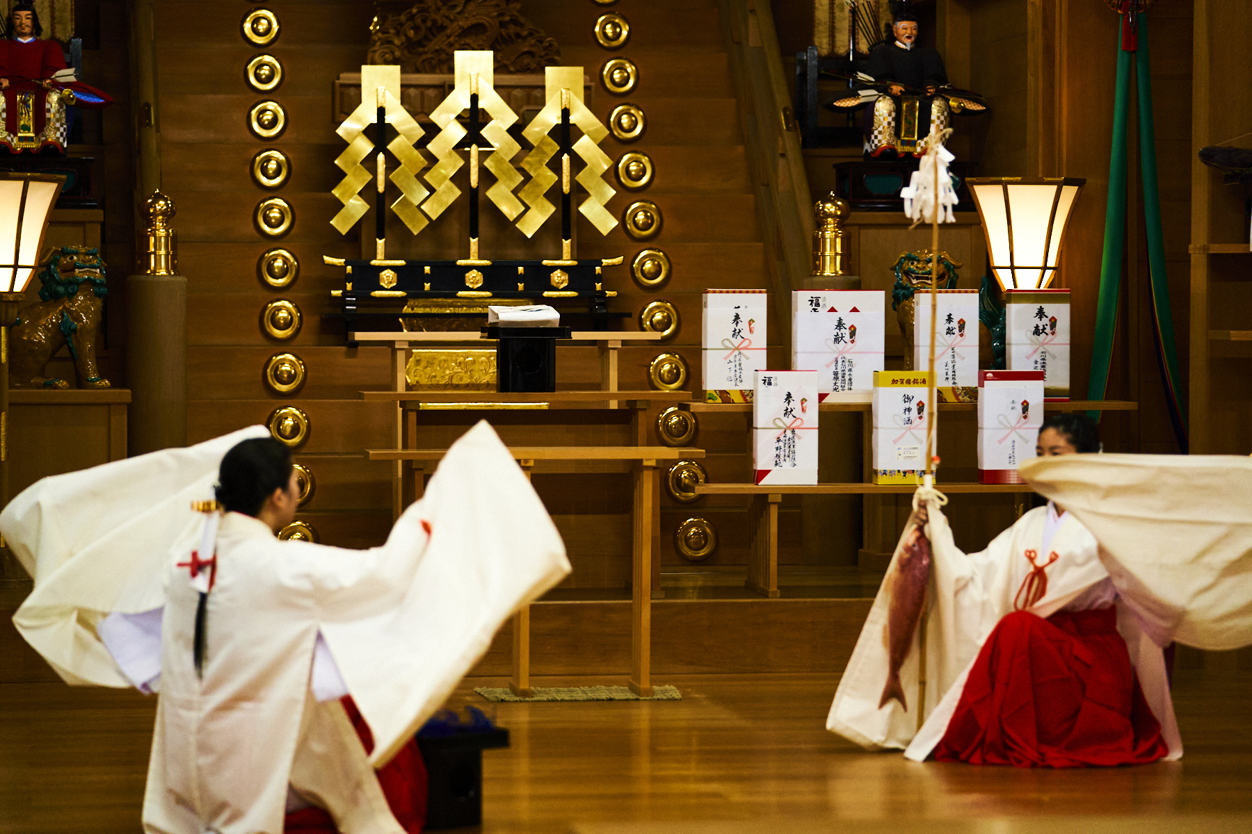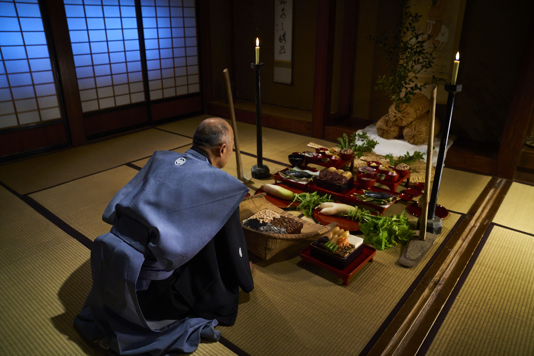 「あえ」はもてなし、「こと」は儀礼を意味するといわれ、稲の生育と豊作を約束してくれる「田の神」が、あたかもそこに実在するかのように行われる、収穫への感謝と豊作の祈願を行う神事です。