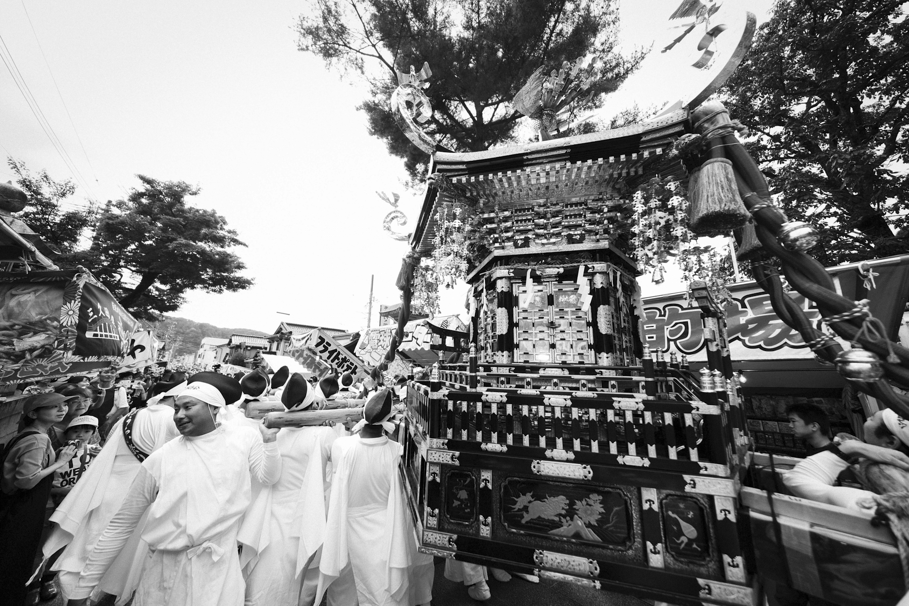 800年の歴史があるといわれる、金劔宮(きんけんぐう)の秋季祭。巨大な人形を載せた造り物は迫力満点。夜には、造り物が灯りで照らされ、昼間とはまた違った表情を見せてくれます。