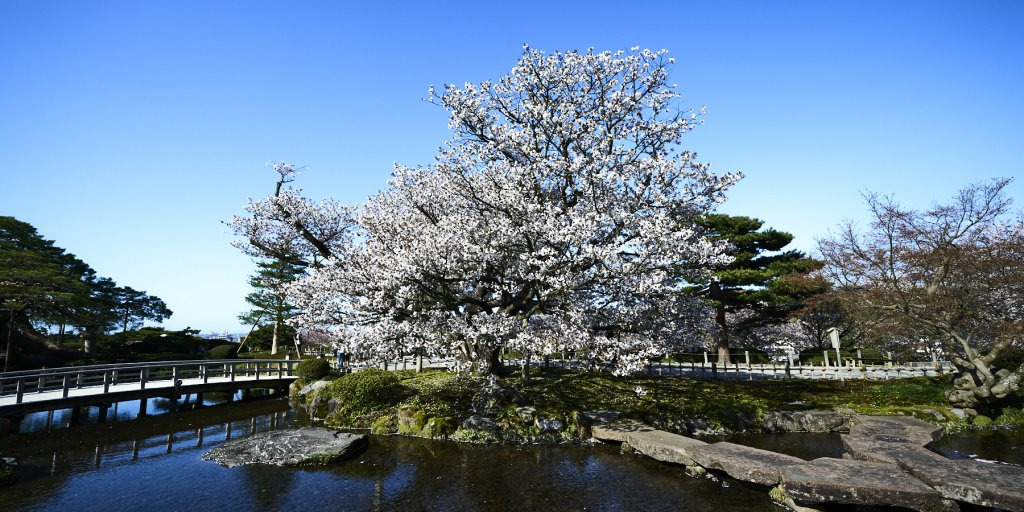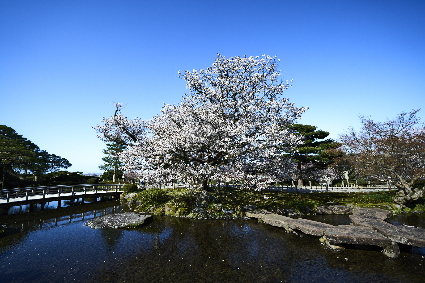 春のサクラ、初夏のカキツバタ、秋の紅葉、冬の雪吊りと、四季折々の美しさが訪れる人を魅了する兼六園。冬の静かな美しさから木々が芽吹きはじめる春。園内に植えられている様々な桜が、人々を楽しませます。
