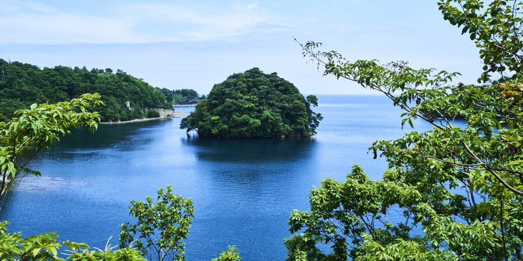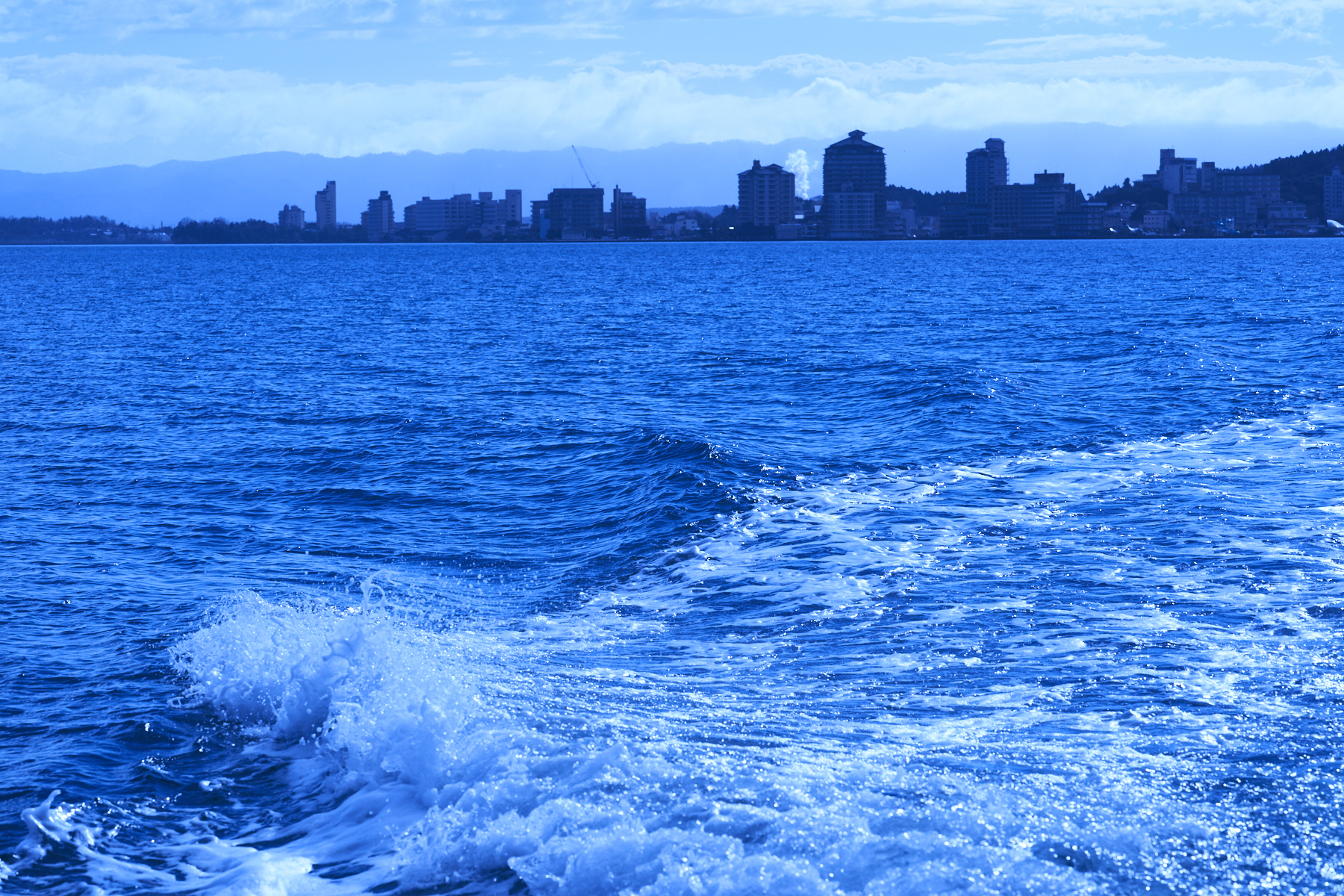 日本海の荒波のイメージとは相反し、一年を通して穏やかで風光明媚な七尾湾。海上には遮るものがなく、開放的な風景を楽しめます。