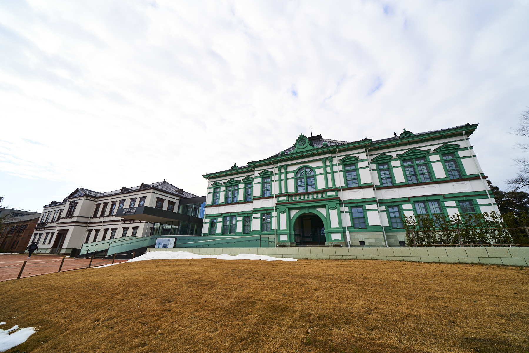 日本で唯一の工芸・デザイン専門の国立美術館。建物は国登録有形文化財で、旧陸軍の「第九師団司令部庁舎」と「金沢偕行社」を移築・復元しています。