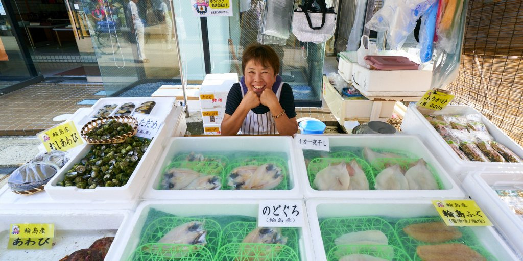 千年以上続いているといわれている輪島朝市。売られるものに「値札」はあまり付いておらず、値段は交渉次第。地元の人との会話を楽しみながら値切りをするのも朝市の醍醐味です。