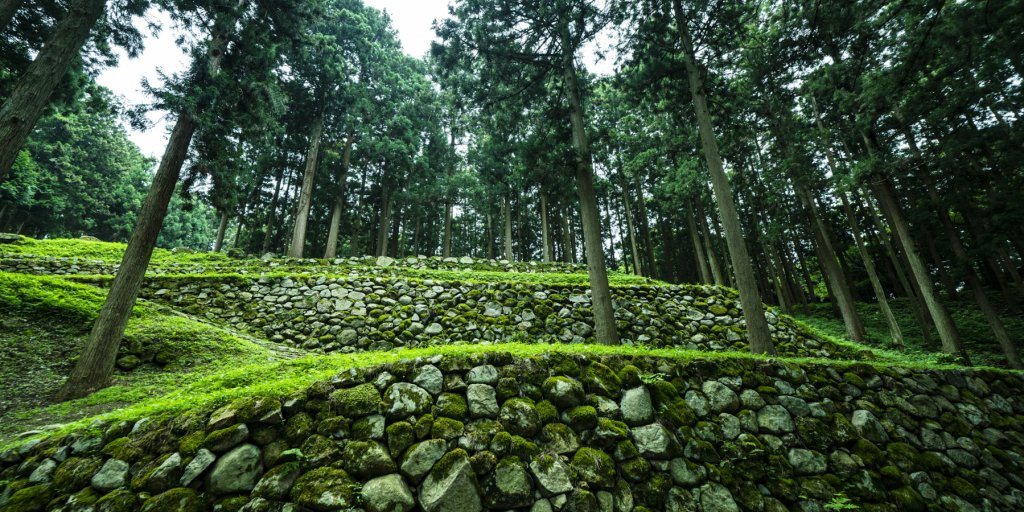 上杉謙信も絶賛した眺望抜群の山城。山の地形を巧みに利用して造られた城は、国内屈指の規模と言われており、城郭跡や石垣が歴史を感じさせます。本丸跡からは七尾湾・能登半島が一望できます。