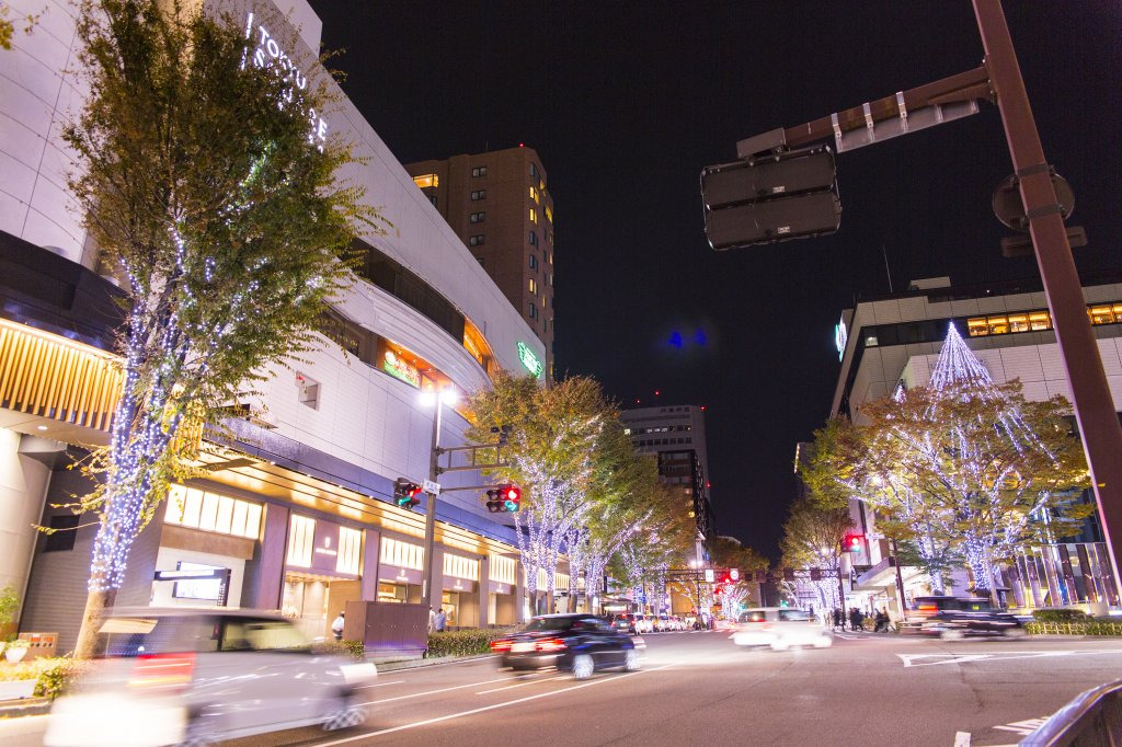 香林坊交差点から香林坊ラモーダに向かう国道157号線沿いのケヤキ並木が、約11万個のLED電球で彩られます。