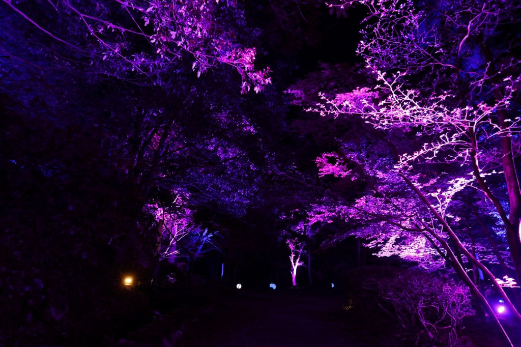 御便殿(ごべんでん)の庭・本堂裏サーチライト・山門を上がった本堂前をライトアップ!幻想的な世界をお楽しみください。