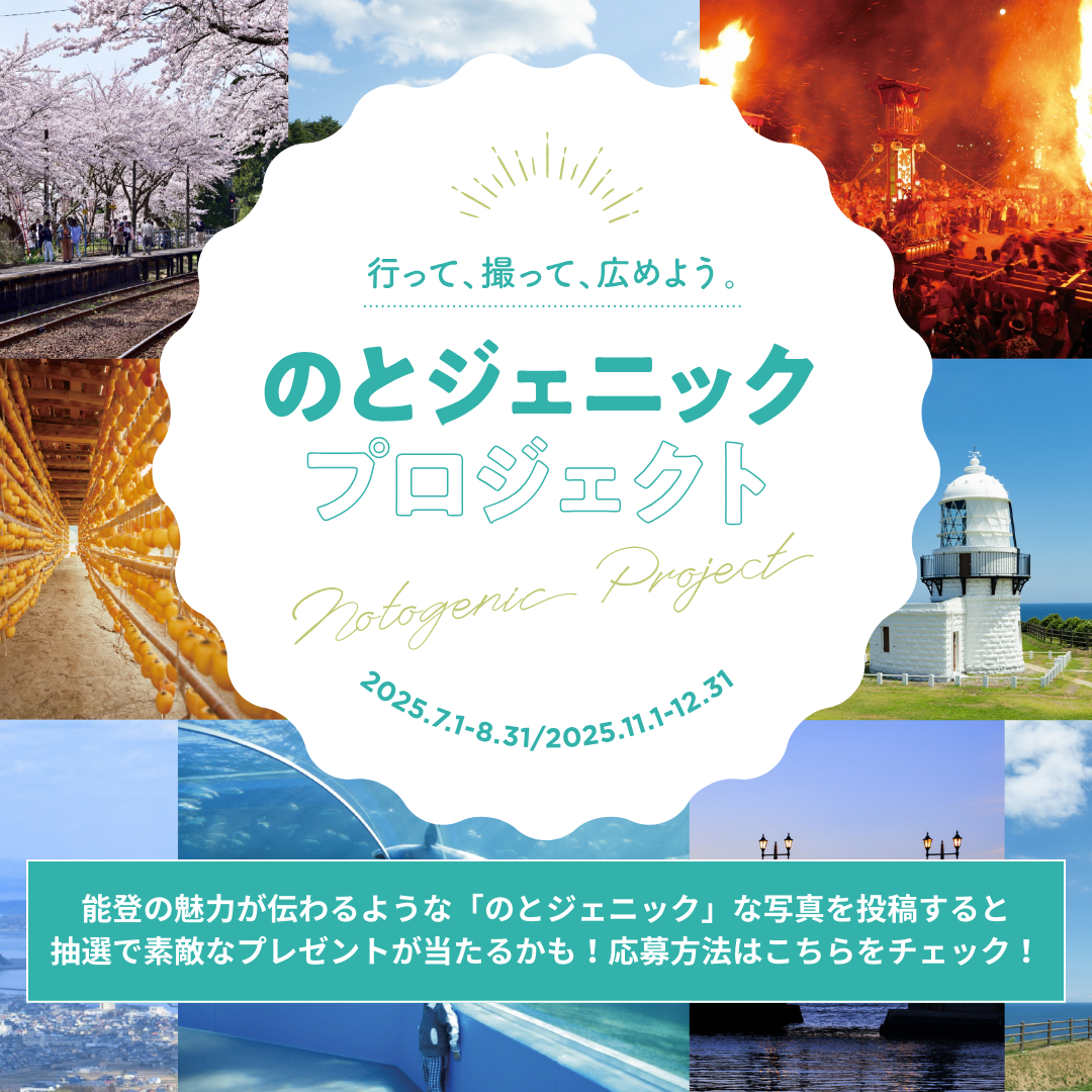 インフォメーション のと鉄道 当面の間臨時ダイヤで運行します 2025.08.19 attention topics/detail_211.html 令和6年(2024年)能登半島地震に係る災害義援金の受付及びふるさと納税について 2024.01.11 attention topics/detail_29.html 「のともっとマルシェ東京」能登復興へ向けた生産者応援イベント開催のお知らせ 2025.11.05 topics/detail_241.html のとジェニックプロジェクト 第1弾「春と夏の のとジェニック」 受賞作品を掲載しています! 2025.10.09 topics/detail_236.html ユーミンの楽曲がつなぐ ― 「能登エールアートプロジェクト」全国から募集中! 2025.10.03 topics/detail_234.html インフォメーションをもっと見る