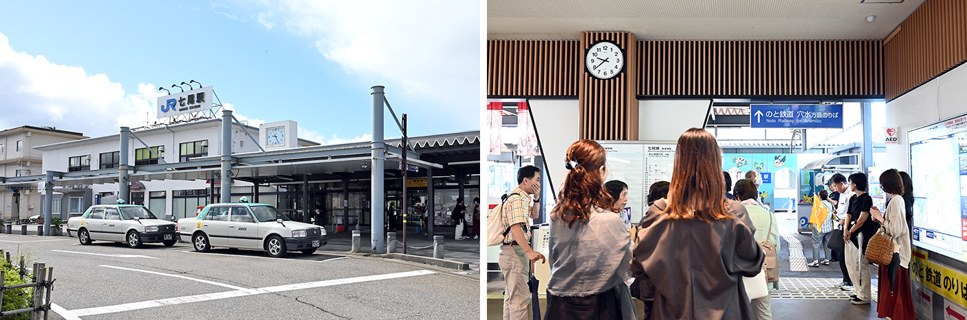 能登地域に入ると車窓にはのどかな田園風景が広がり、所どころで地震の影響が垣間見えるようになってきます。