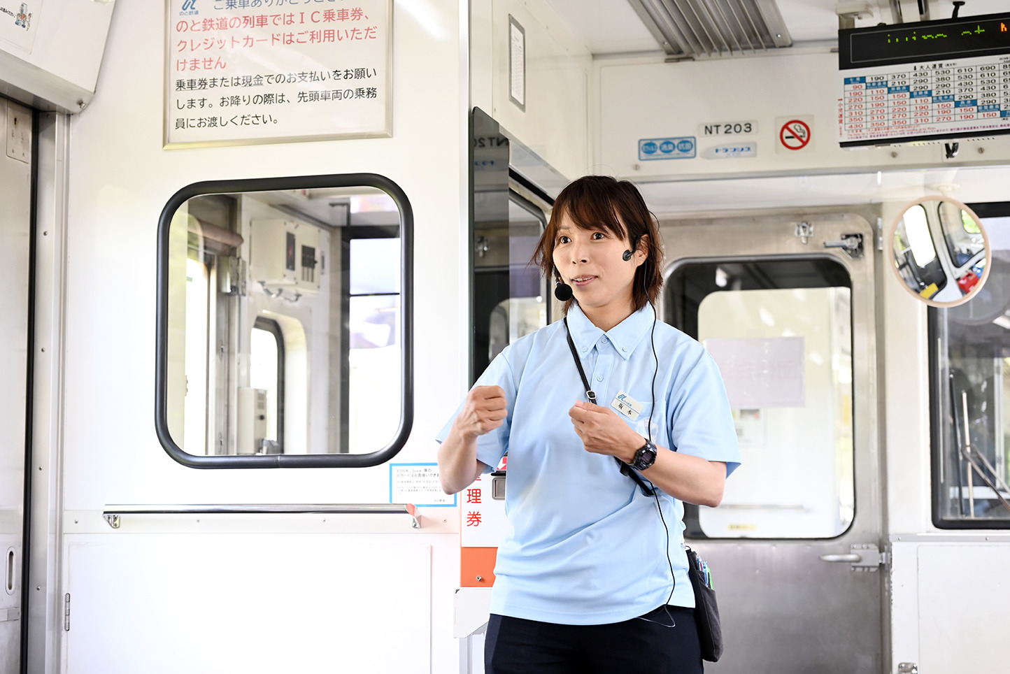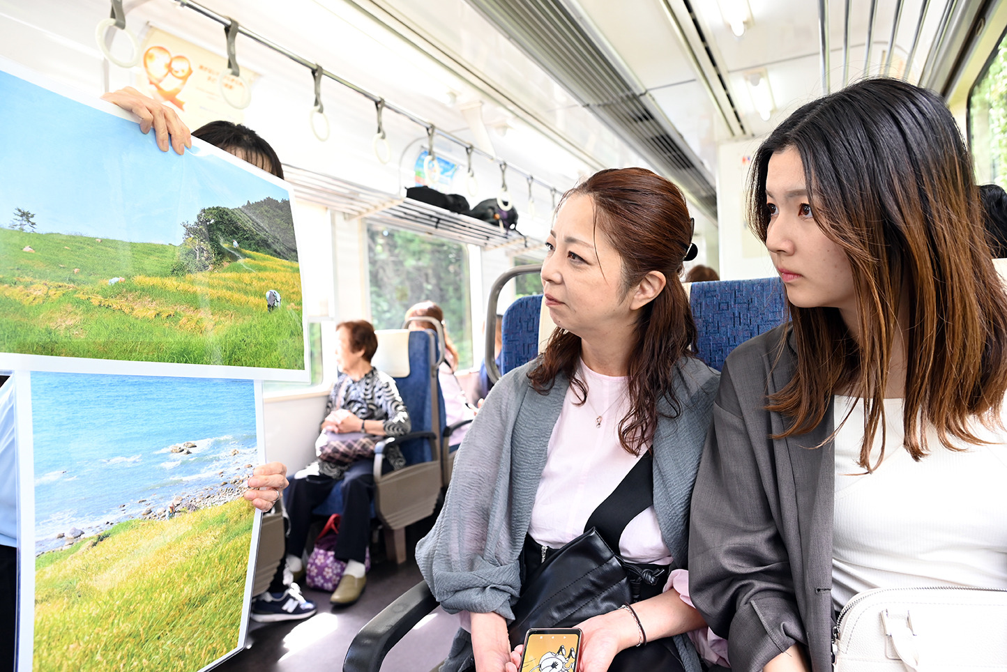 「私は揺れる中、手すりを掴みながらお客さまのもとに進み『大丈夫ですか、安心してください、頭を守ってください』と声をかけながら、窓のスクリーンを下ろして回りました。しばらくすると、外から『津波です、逃げてください』というアナウンスが聞こえてきて・・・」と、ちょうど「能登中島駅」に差し掛かるときに語られる地震発生時の体験談は、まるで自分がその場にいるような臨場感がありました。