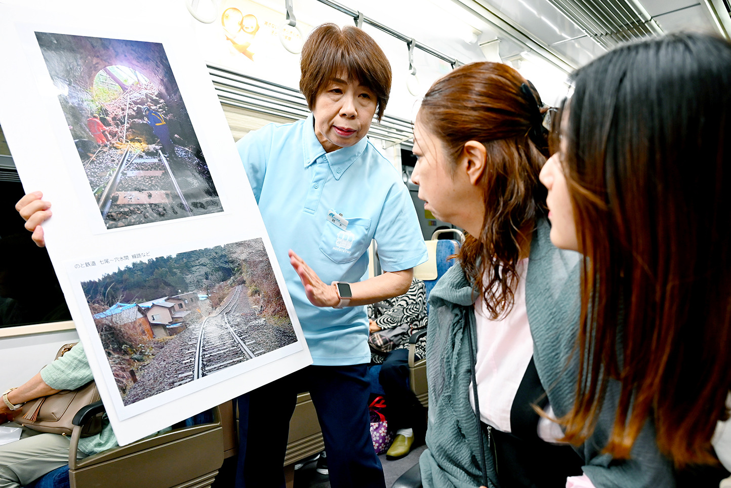 「語り部列車」は、能登地域の基幹交通としての役割を担う「のと鉄道」が、地震の風化防止や災害の教訓を伝えるため9月16日から運行を開始した企画列車で、地震前に走らせていた観光列車の乗務員3名が「語り部」となり、能登に何が起き、人々がいま何を思い、考え、生きているのか、穏やかな車窓からの風景とともに“能登の今”を伝えています。