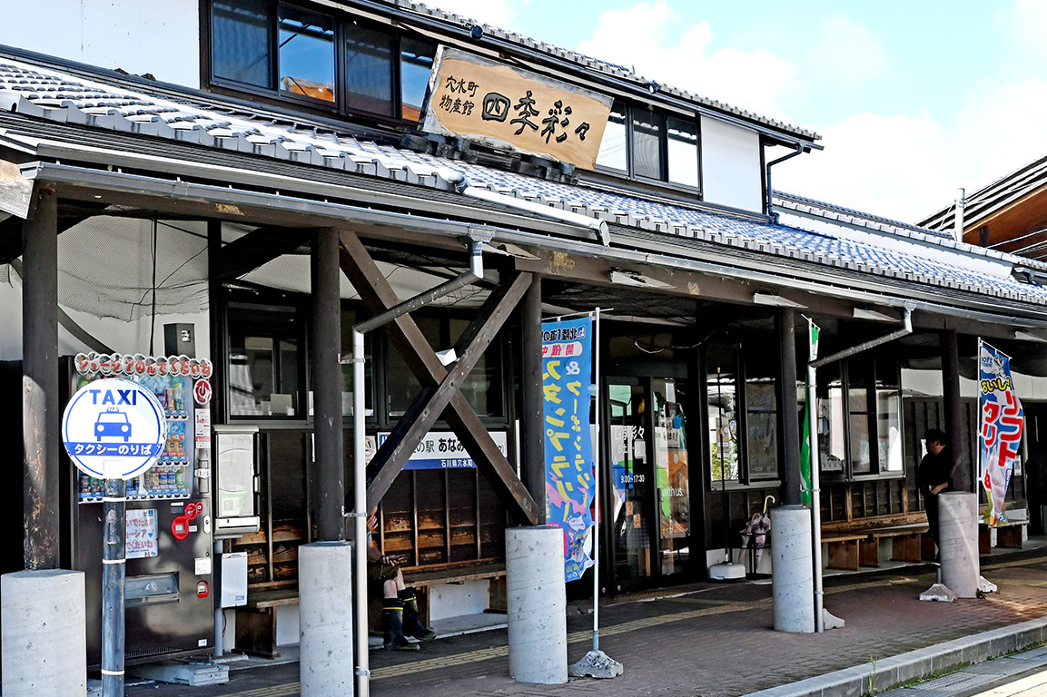 「穴水駅」を出て向かって右手にあるお土産店「四季彩々」に立ち寄りました。能登半島の先端「奥能登」エリアを中心としたお土産品が揃い、これから行く「口能登」と呼ばれる能登半島の付け根にある羽咋(はくい)のお土産店とは違った品々が並びます。お菓子や調味料、お酒、輪島塗、のと鉄道グッズなど、ここでしか買えないお土産が購入できます。