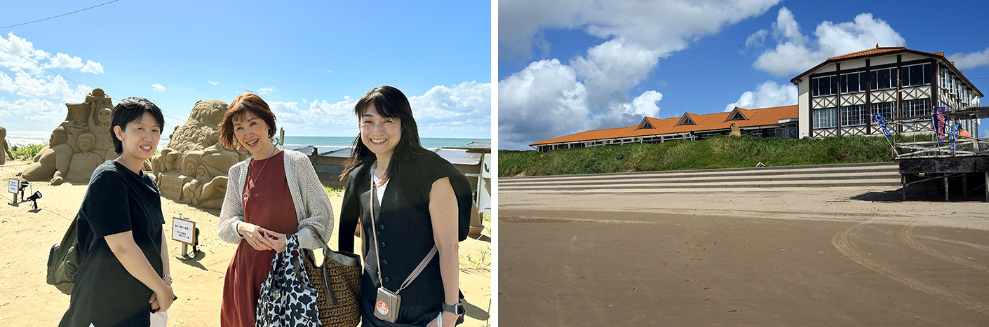 建物の外へ出て散策を楽しむのも素敵です。千里浜は砂を利用した「千里浜砂像」も有名で、千里浜砂像協会や地元学生などが制作した3メートルを超える巨大な砂像を、駐車場の奥にある海に面した展示場で見ることができます。