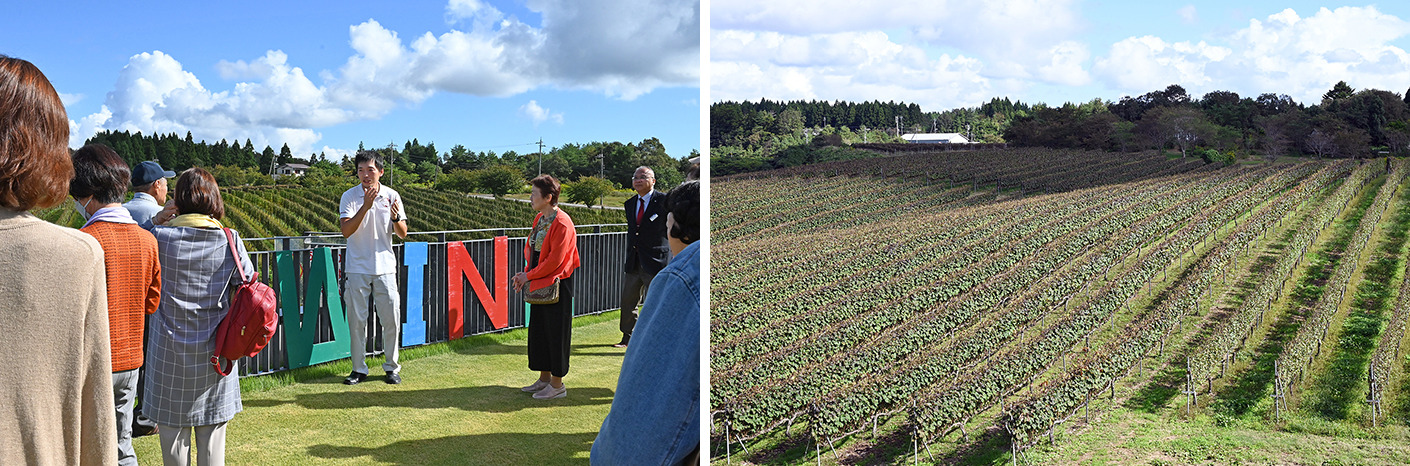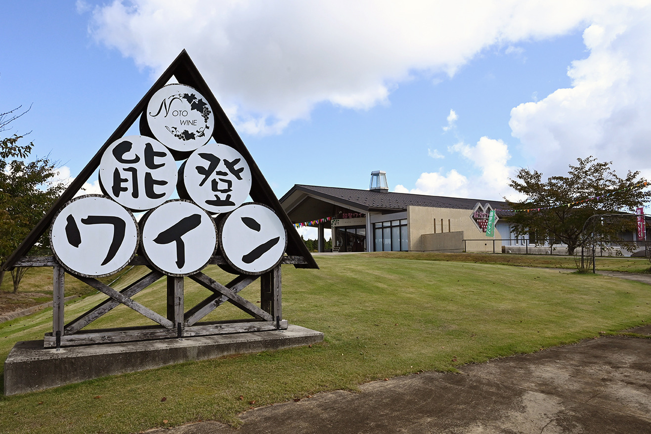 途中の道路もスムーズで、予定より20分ほど早く9:30に穴水町にある「能登ワイン」に到着。穴水町の特産である牡蠣の殻を活用した土壌でワイン用ブドウを栽培するなど、能登半島の風土と気候をいかし、ワイン造りをしているワイナリーです。