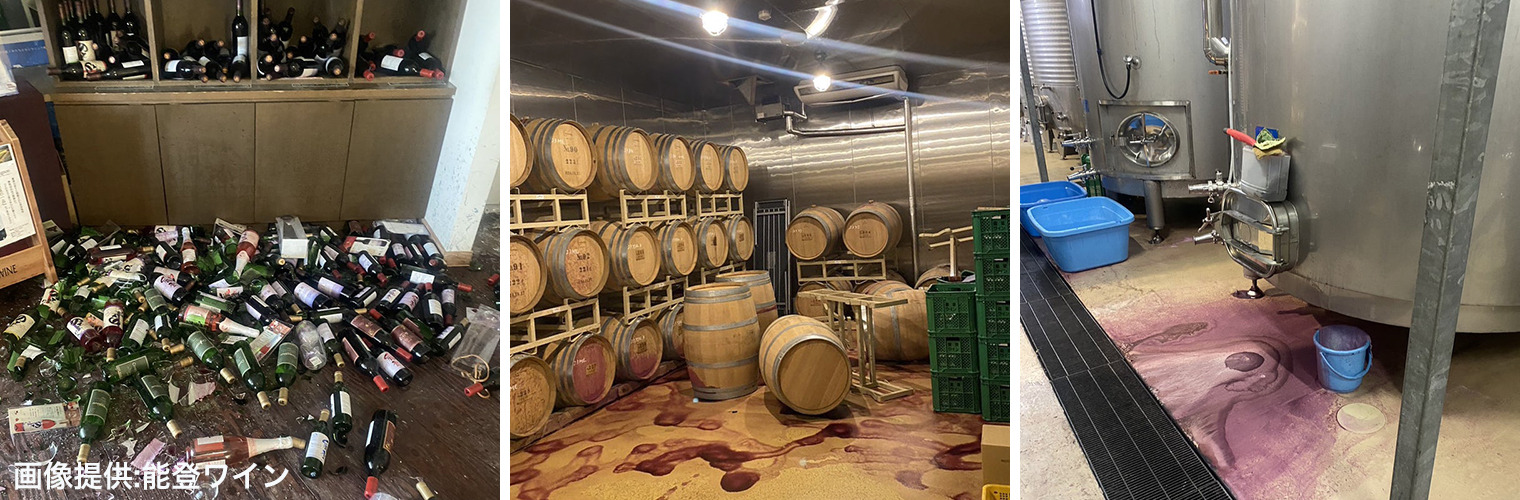 「元日の地震でワイナリーにはほとんど被害はありませんでしたが、瓶詰めされたワインの一部や熟成樽が2樽落ちて割れ、10本あるステンレスタンクのうち1本から1万リットルのワインが流出してしまいました」と岡本さん。