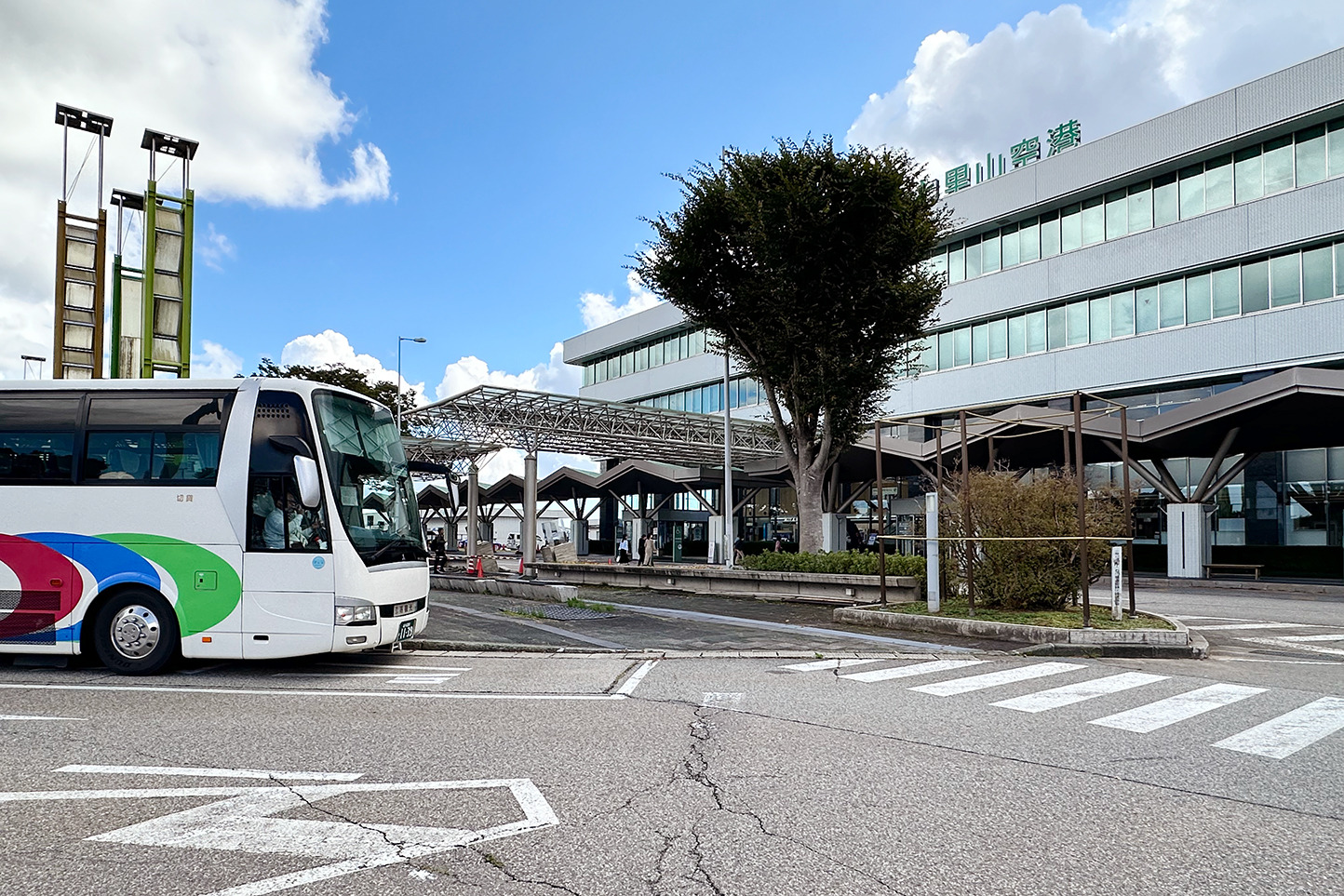 「のと里山空港」から再び貸切バスに乗り「のと鉄道」の「穴水駅」を目指し20分ほど移動します。「穴水駅」からは列車移動になるため、貸切バスとはここでお別れです。
