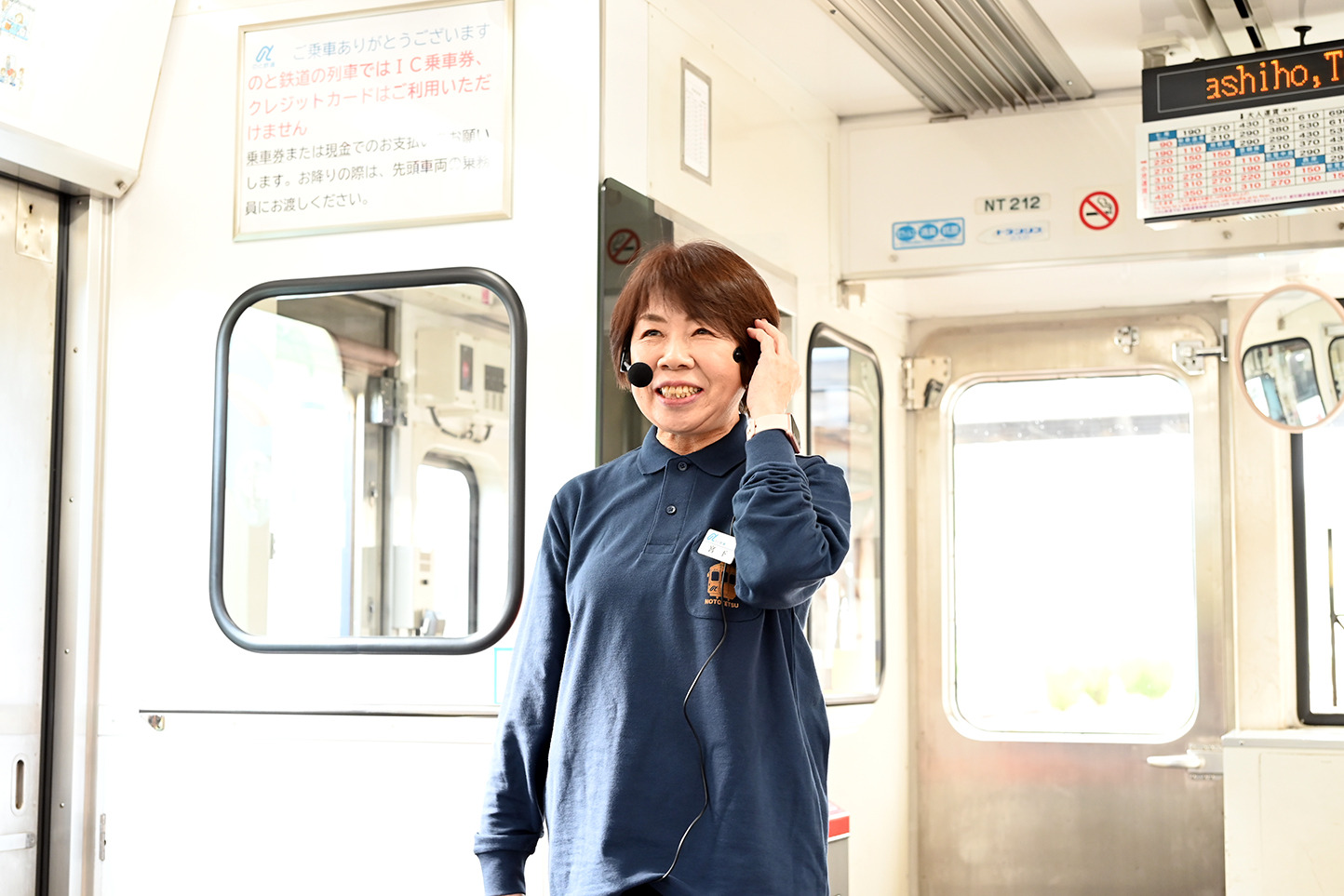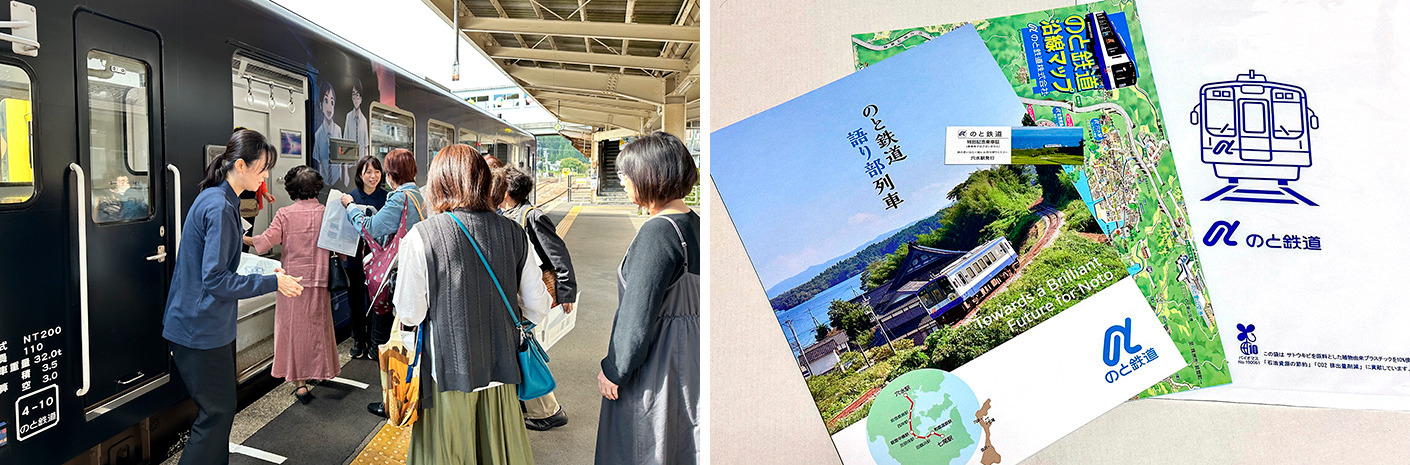 「語り部列車」は、能登地域の基幹交通としての役割を担う「のと鉄道」が、地震の風化防止や災害の教訓を伝えるため9月16日から運行を開始した企画列車です。地震前に走らせていた観光列車の乗務員3名が「語り部」となり、能登に何が起き、人々がいま何を思い、考え、生きているのかを、車窓からの風景とともに“能登の今”として伝えています。