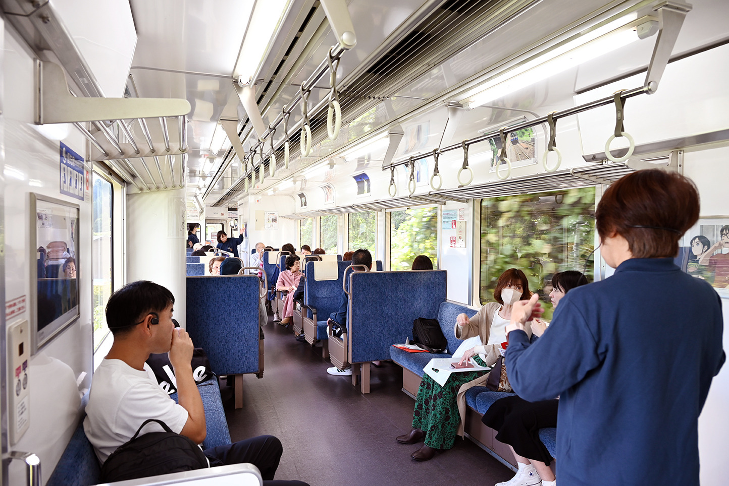 その時も、この日の「語り部列車」と同じ一般車両と連結した2両編成で、観光列車には35名、一般車両には8名、運転士や乗務員を合わせて48名が乗車していたそう。