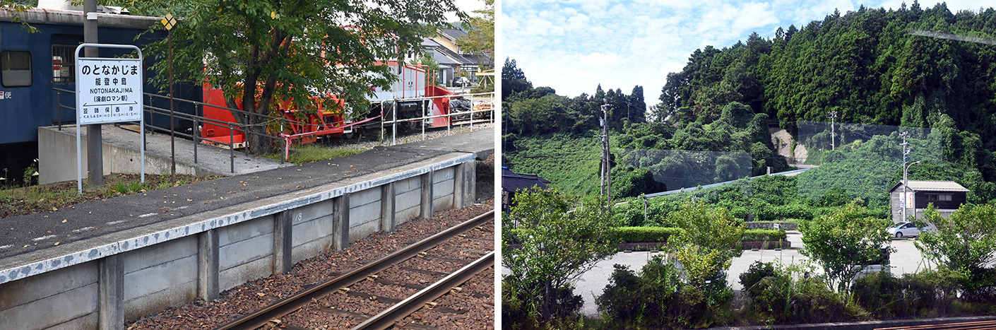 「繰り返す揺れ、一番大きな地震のときは悲鳴も出ないほど大変なものでした。揺れがおさまると運転士がすぐにドアを開けてくれたので、お客さまを誘導し車外に脱出しましたが、安心する間もなく津波警報が出ました。運転士が『高台へ逃げろ』と、駅前の丘の上にある廃校になった中島高校を指差して叫び・・・」と、「能登中島駅」や高台への登り道に差し掛かったときに語られ臨場感がありました。