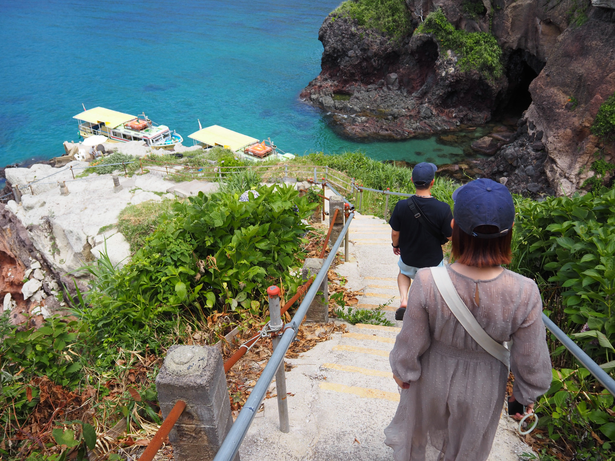 遊覧船に乗るまでの道のりも絶景が続き、海の青さに思わず目を奪われます。