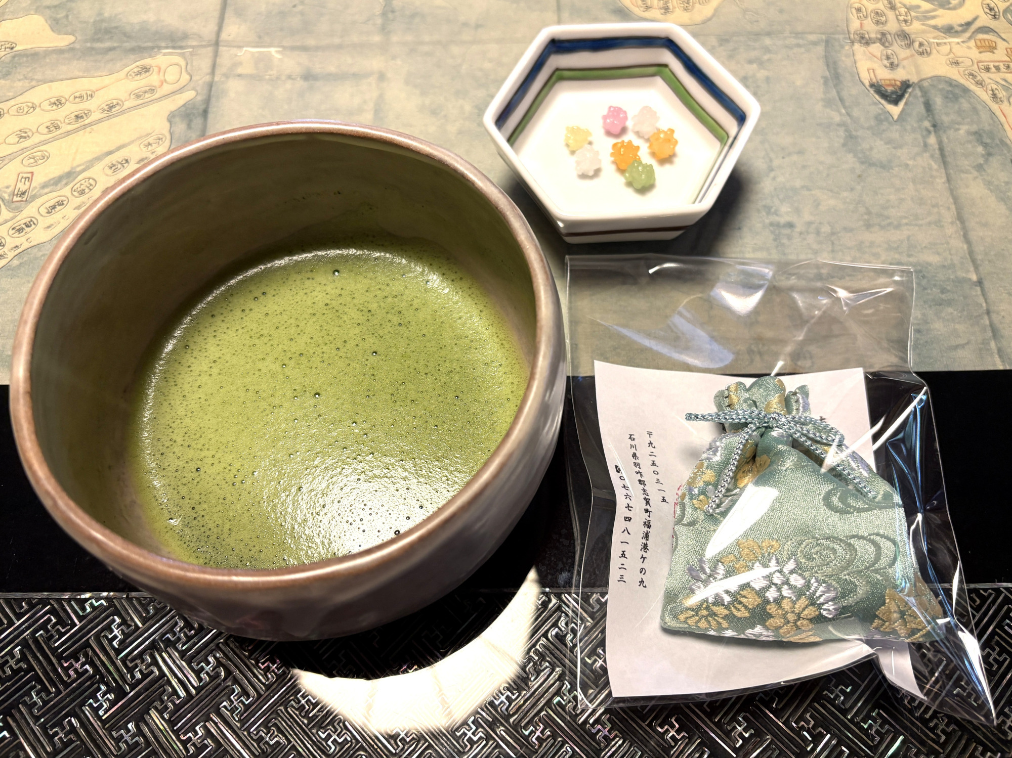 その後は、お抹茶とお茶菓子をいただきながら、福浦の歴史についてお話を伺い、ゆったりとしたひとときを過ごしました。地元でツアーガイドもされているというご住職はお話がとてもお上手で、気づけばあっという間に時間が過ぎていました。