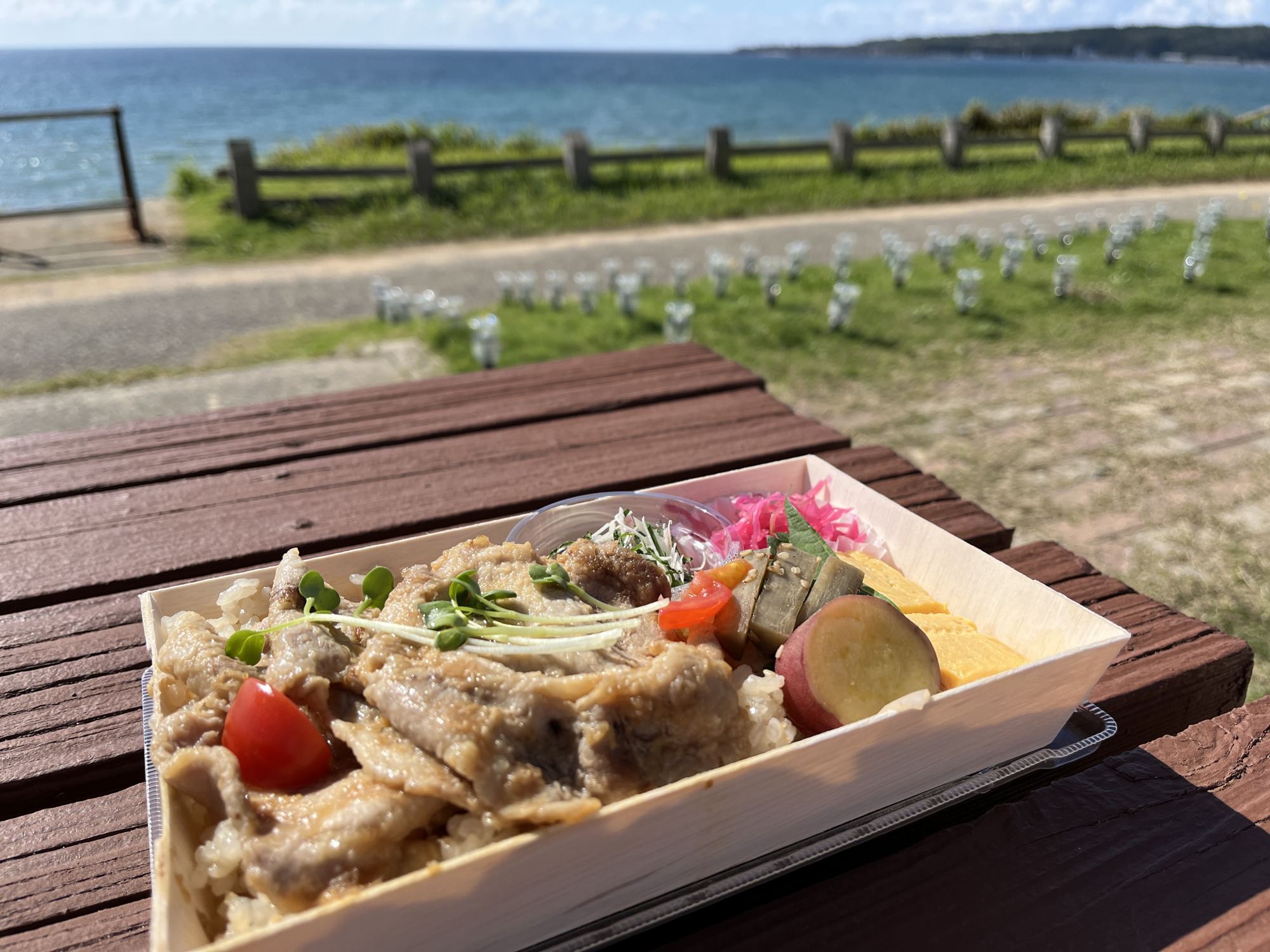 昼食には、筆者イチオシのお弁当をいただきます。道の駅の横にある階段を上り、世界一長いベンチで楽しむ「波涛園(はとうえん)」さんのお弁当は格別!味も彩りもバランスも、どれを取ってもピカイチです。