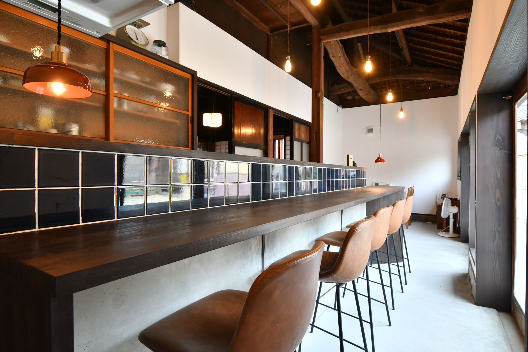 築90年の古民家でありながら、水回りがリフォームされているのも嬉しいポイント。清潔感のある共用キッチンでは、カウンターを囲んで友人と“バーごっこ”を楽しんだり、滞在中はコワーキングスペースのように活用することもできました。“泊まる”だけではない、自由で心地よい過ごし方ができる宿です。