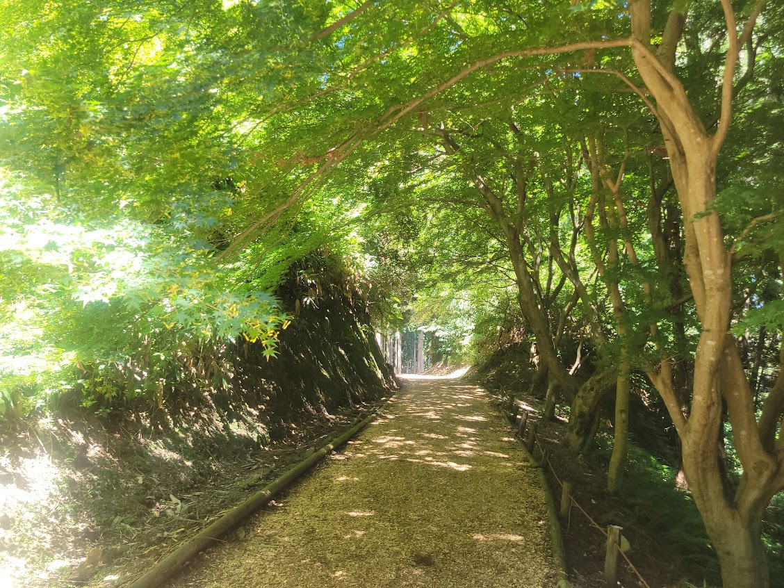 道には急勾配の箇所もありますが、山の地形を巧みに利用した緩やかな蛇行ルートとなっています。両側が谷になっている場所もあり、当時の戦の緊張感を想像しながら歩くことができます。