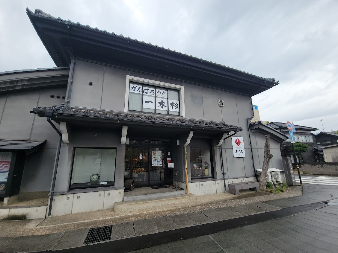 七尾市一本杉商店街は、七尾城山登山口駐車場から車で約7分の場所にあります。