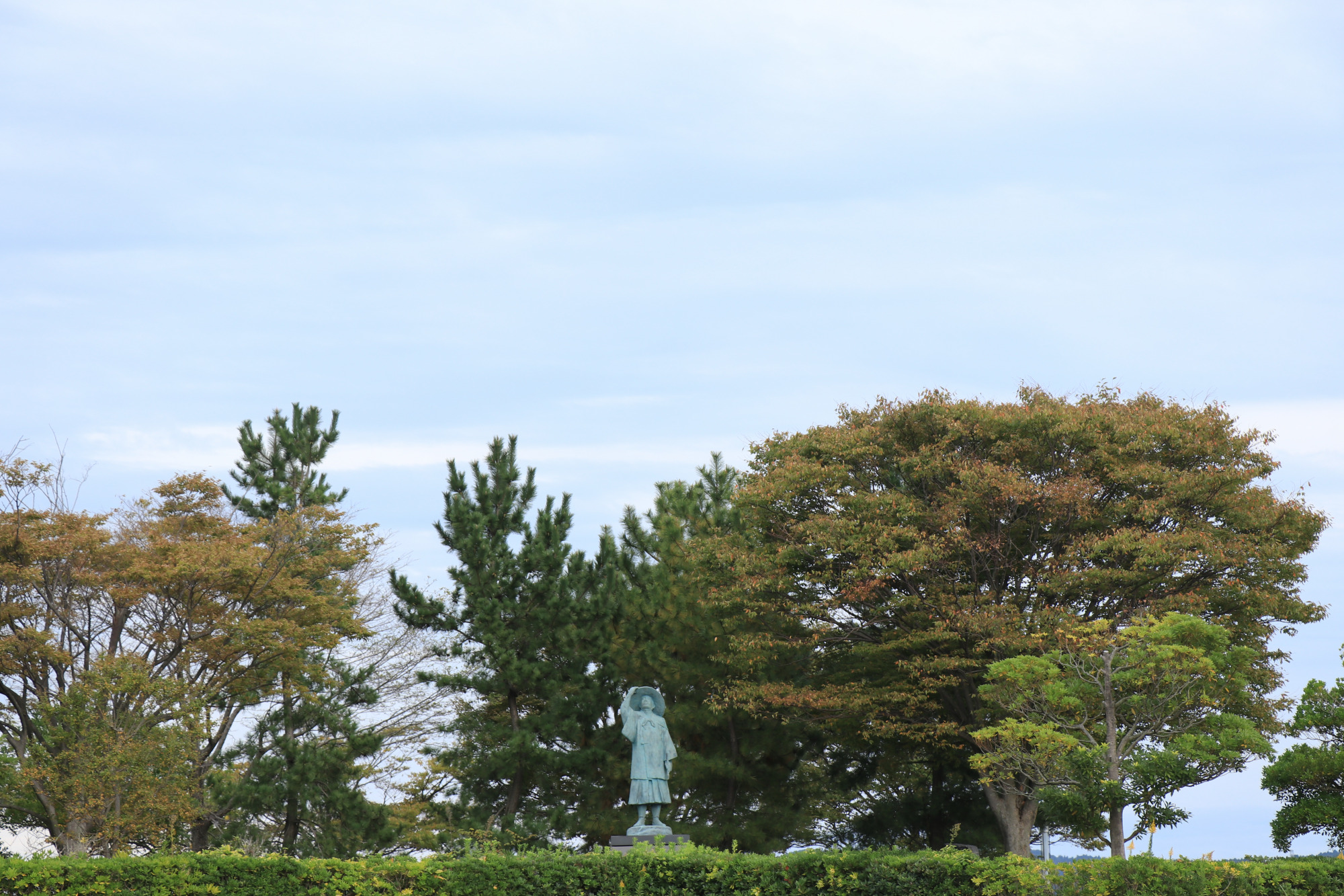 七尾駅から徒歩圏内にある「長谷川等伯 青雲の像」。