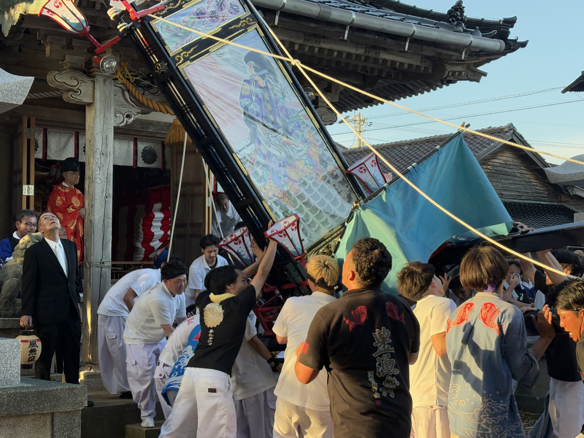 今回は担ぎ手としてだけでなく、着付けの協力者としても参加しました。独特の着物を整えながら交わした会話の中で聞こえてきたのは、かつては当たり前だった祭りの風景や、一度はこの伝統が途絶えかけた不安といった、観光客として訪れるだけでは聞き取りにくい本音の声でした。