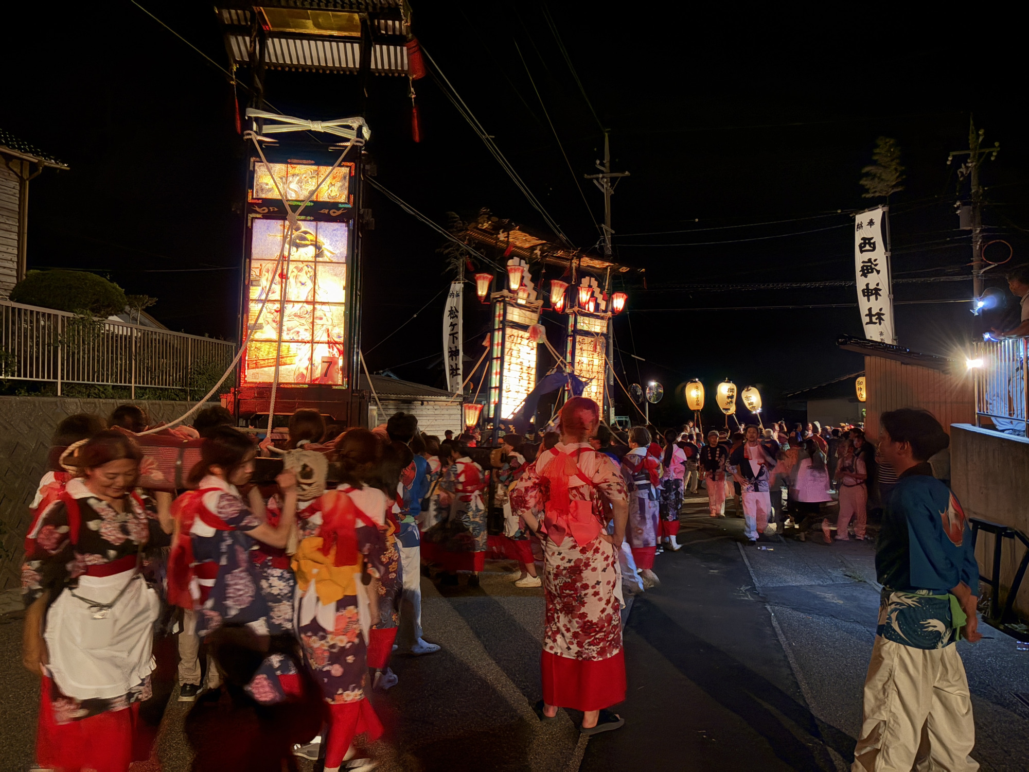 真夜中まで続くのが能登の祭りの醍醐味。蒸し暑い時期でも、見学者は羽織ものを1枚用意すると安心です。虫よけにも役立ちます。