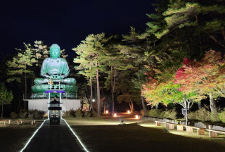 穴水町にある「能登長寿大仏」を紅葉が深まるシーズンに合わせて、ライトアップ(能登長寿大仏、三重の塔、極楽橋)を行います。ひとときの安らぎと幻想的な景色をお楽しみください!