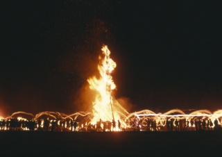 男神と女神の逢瀬の夜に、巨大松明の炎が燃え盛る