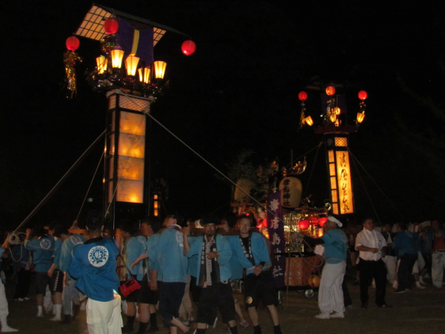 - 神輿がキリコと山車をともに巡行し、地区特有の祭り唄「中居囃し」を唄いながら家々を回ります。「屏風まつり」とも言われ、祭りの期間中、各家が祭壇を作って自慢の屏風を飾り、訪れる人々に披露します。クライマックスは午後10時を過ぎる頃。河畔の広場に立てられ…